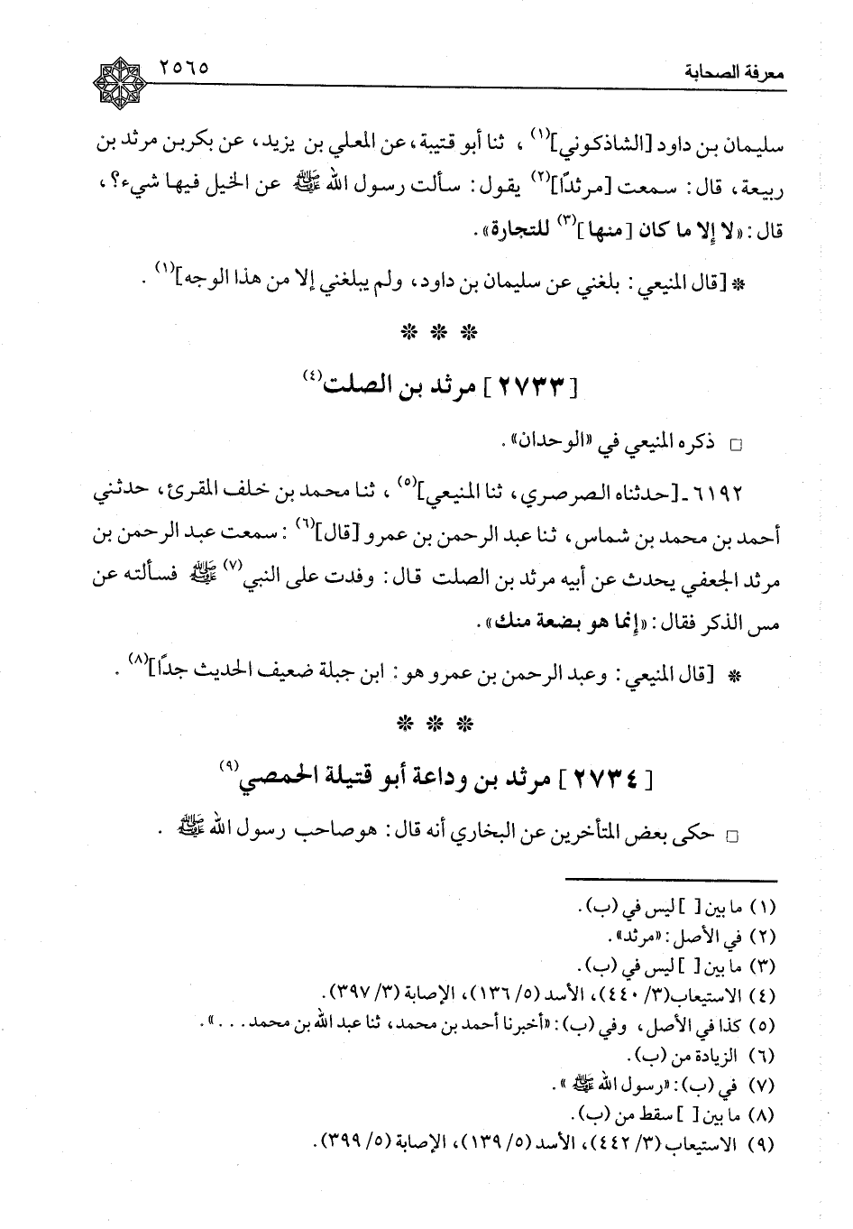 مَرْثَدُ بْنُ وَدَاعَةَ أَبُو قُتَيْلَةَ الْحِمْصِيُّ حَكَى بَعْضُ الْمُتَأَخِّرِينَ عَنِ الْبُخَارِيِّ أَنَّهُ قَالَ: هُوَ صَاحِبُ رَسُولِ اللهِ صَلَّى اللَّهُ عَلَيْهِ وَسَلَّمَ