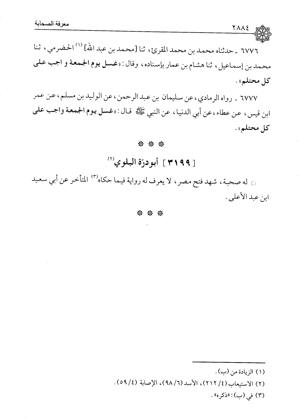٦٧٧٦ - حَدَّثَنَاهُ مُحَمَّدُ بْنُ مُحَمَّدٍ الْمُقْرِئُ، ثنا مُحَمَّدُ بْنُ عَبْدِ اللهِ الْحَضْرَمِيُّ، ثنا مُحَمَّدُ بْنُ إِسْمَاعِيلَ، ثنا هِشَامُ بْنُ عَمَّارٍ، بِإِسْنَادِهِ، وَقَالَ: «غُسْلُ يَوْمِ الْجُمُعَةِ وَاجِبٌ عَلَى كُلِّ مُحْتَلِمٍ»