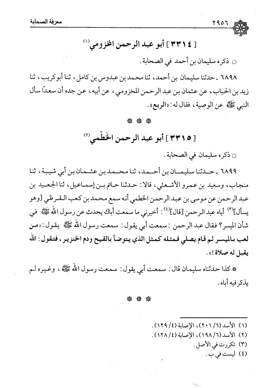 أَبُو عَبْدِ الرَّحْمَنِ الْخَطْمِيُّ ذَكَرَهُ سُلَيْمَانُ فِي الصَّحَابَةِ