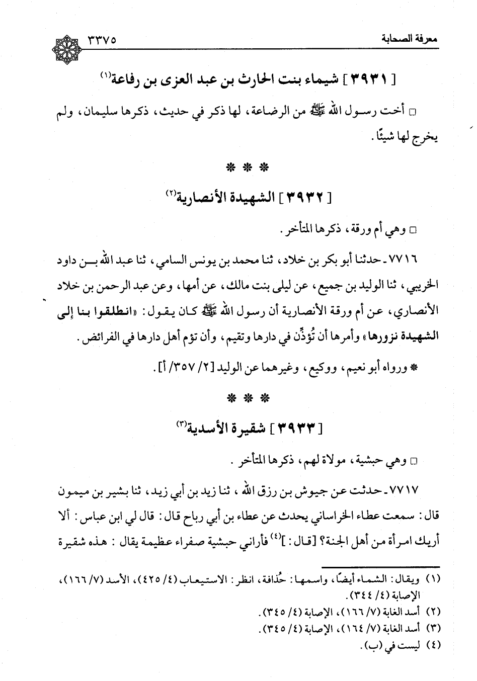 الشَّهِيدَةُ الْأَنْصَارِيَّةُ وَهِيَ أُمُّ وَرَقَةُ، ذَكَرَهَا الْمُتَأَخِّرُ