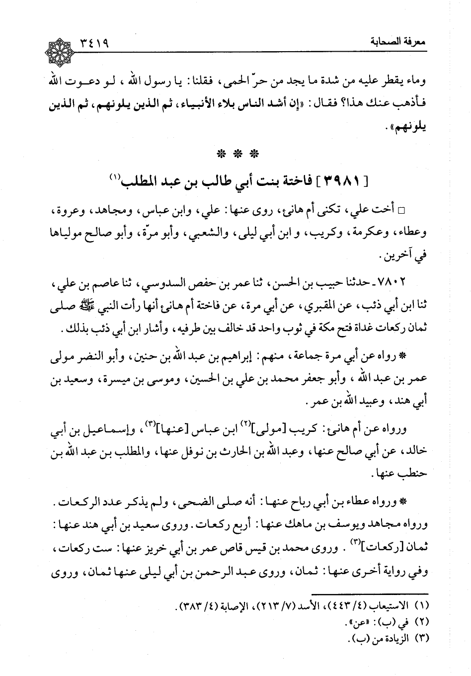 فَاخِتَةُ بِنْتُ أَبِي طَالِبِ بْنِ عَبْدِ الْمُطَّلِبِ أُخْتُ عَلِيٍّ، تُكْنَى أُمَّ هَانِئٍ، رَوَى عَنْهَا: عَلِيٌّ، وَابْنُ عَبَّاسٍ، وَمُجَاهِدٌ، وَعُرْوَةُ، وَعَطَاءٌ، وَعِكْرِمَةُ، وَكُرَيْبٌ، وَابْنُ أَبِي لَيْلَى، وَالشَّعْبِيُّ، وَأَبُو مُرَّةَ، وَأَبُو صَالِحٍ مَوْلَيَاهَا فِي آخَرِينَ