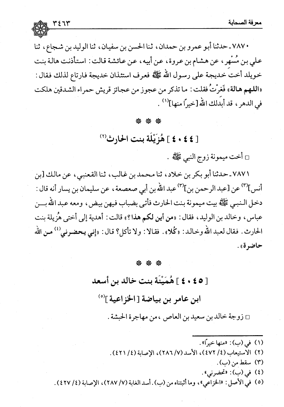 هُزَيْلَةُ بِنْتُ الْحَارِثِ أُخْتُ مَيْمُونَةَ زَوْجِ النَّبِيِّ صَلَّى اللَّهُ عَلَيْهِ وَسَلَّمَ