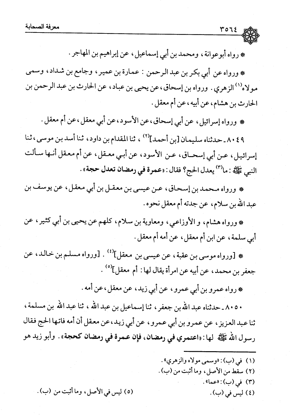 ٨٠٤٩ - حَدَّثَنَاهُ سُلَيْمَانُ بْنُ أَحْمَدَ، ثنا الْمِقْدَامُ بْنُ دَاوُدَ، ثنا أَسَدُ بْنُ مُوسَى، ثنا إِسْرَائِيلُ، عَنْ أَبِي إِسْحَاقَ، عَنِ الْأَسْوَدِ، عَنْ أَبِي مَعْقِلٍ، عَنْ أُمِّ مَعْقِلٍ، أَنَّهَا سَأَلَتِ النَّبِيَّ صَلَّى اللَّهُ عَلَيْهِ وَسَلَّمَ: مَا يَعْدِلُ الْحَجَّ؟ فَقَالَ: «عُمْرَةٌ فِي رَمَضَانَ تَعْدِلُ حَجَّةً» وَرَوَاهُ مُحَمَّدُ بْنُ إِسْحَاقَ، عَنْ عِيسَى بْنِ مَعْقِلِ بْنِ أَبِي مَعْقِلٍ، عَنْ يُوسُفَ بْنِ عَبْدِ اللهِ بْنِ سَلَّامٍ، عَنْ جَدَّتِهِ أُمِّ مَعْقِلٍ نَحْوَهُ، وَرَوَاهُ هِشَامٌ، وَالْأَوْزَاعِيُّ، وَمُعَاوِيَةُ بْنُ سَلَّامٍ، كُلُّهُمْ عَنْ يَحْيَى بْنِ أَبِي كَثِيرٍ، عَنْ أَبِي سَلَمَةَ، عَنِ ابْنِ أُمِّ مَعْقِلٍ، عَنْ أُمِّهِ أُمِّ مَعْقِلٍ وَرَوَاهُ مُوسَى بْنُ عُقْبَةَ، عَنْ عِيسَى بْنِ مَعْقِلٍ وَرَوَاهُ مُسْلِمُ بْنُ خَالِدٍ، عَنْ جَعْفَرِ بْنِ مُحَمَّدٍ، عَنْ أَبِيهِ، عَنِ امْرَأَةٍ يُقَالُ لَهَا: أُمُّ مَعْقِلٍ رَوَاهُ عَمْرُو بْنُ أَبِي عَمْرٍو، عَنْ أَبِي زَيْدٍ، عَنْ مَعْقِلٍ، عَنْ أُمِّهِ