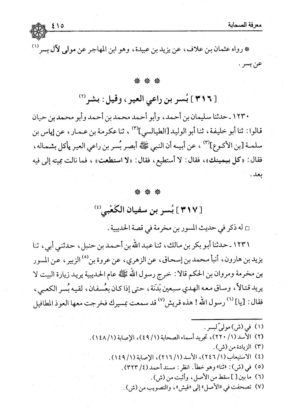 بُسْرُ بْنُ سُفْيَانَ الْكَعْبِيُّ لَهُ ذِكْرٌ فِي حَدِيثِ الْمِسْوَرِ بْنِ مَخْرَمَةَ فِي قِصَّةِ الْحُدَيْبِيَةِ ١٠