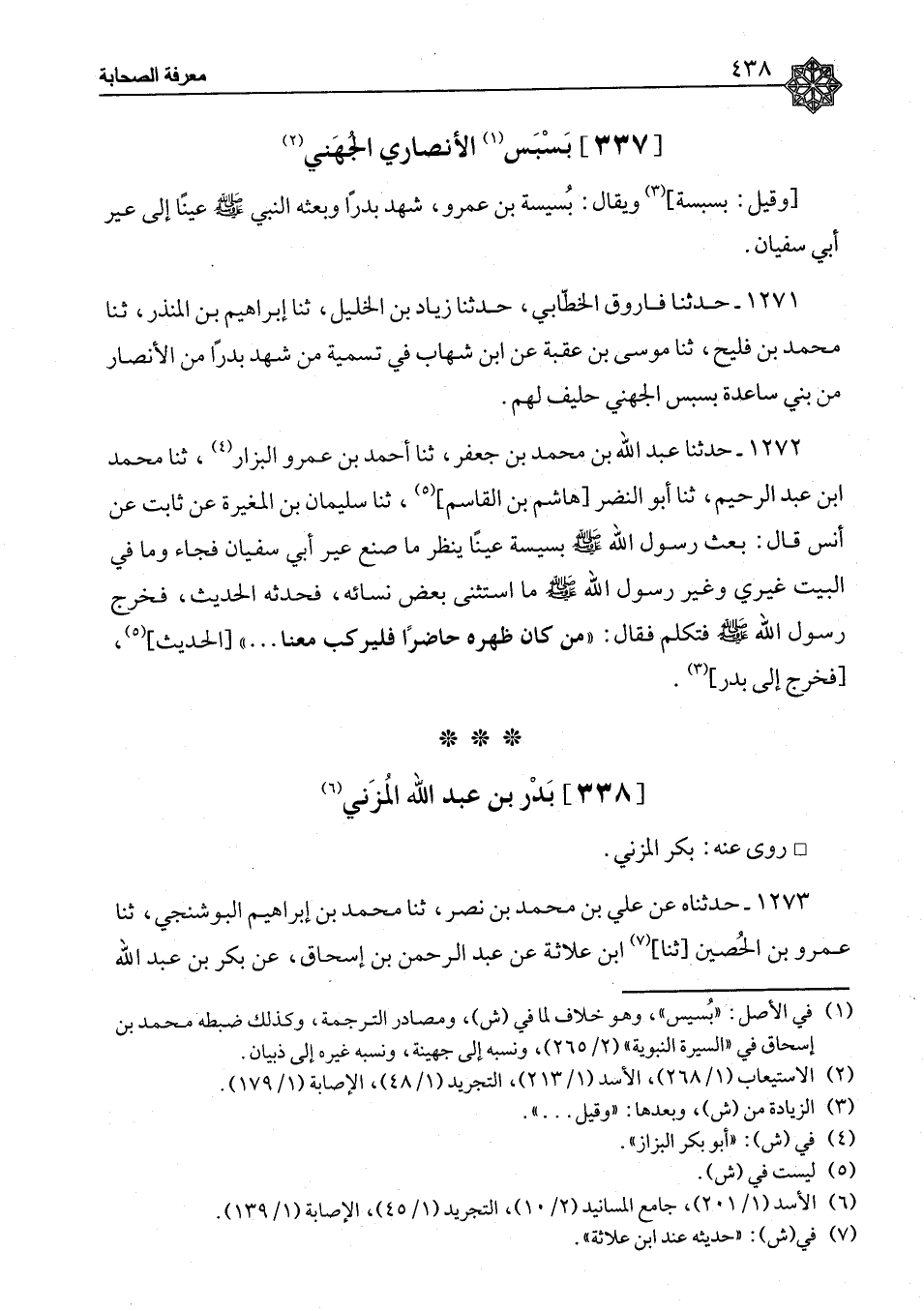 ١٢٧١ - حَدَّثَنَا فَارُوقٌ الْخَطَّابِيُّ، حَدَّثَنَا زِيَادُ بْنُ الْخَلِيلِ، ثنا إِبْرَاهِيمُ بْنُ الْمُنْذِرِ، ثنا مُحَمَّدُ بْنُ فُلَيْحٍ، ثنا مُوسَى بْنُ عُقْبَةَ، عَنِ ابْنِ شِهَابٍ، " فِي تَسْمِيَةِ مَنْ شَهِدَ بَدْرًا مِنَ الْأَنْصَارِ مِنْ بَنِي سَاعِدَةَ: بَسْبَسٌ الْجُهَنِيُّ حَلِيفٌ لَهُمْ "