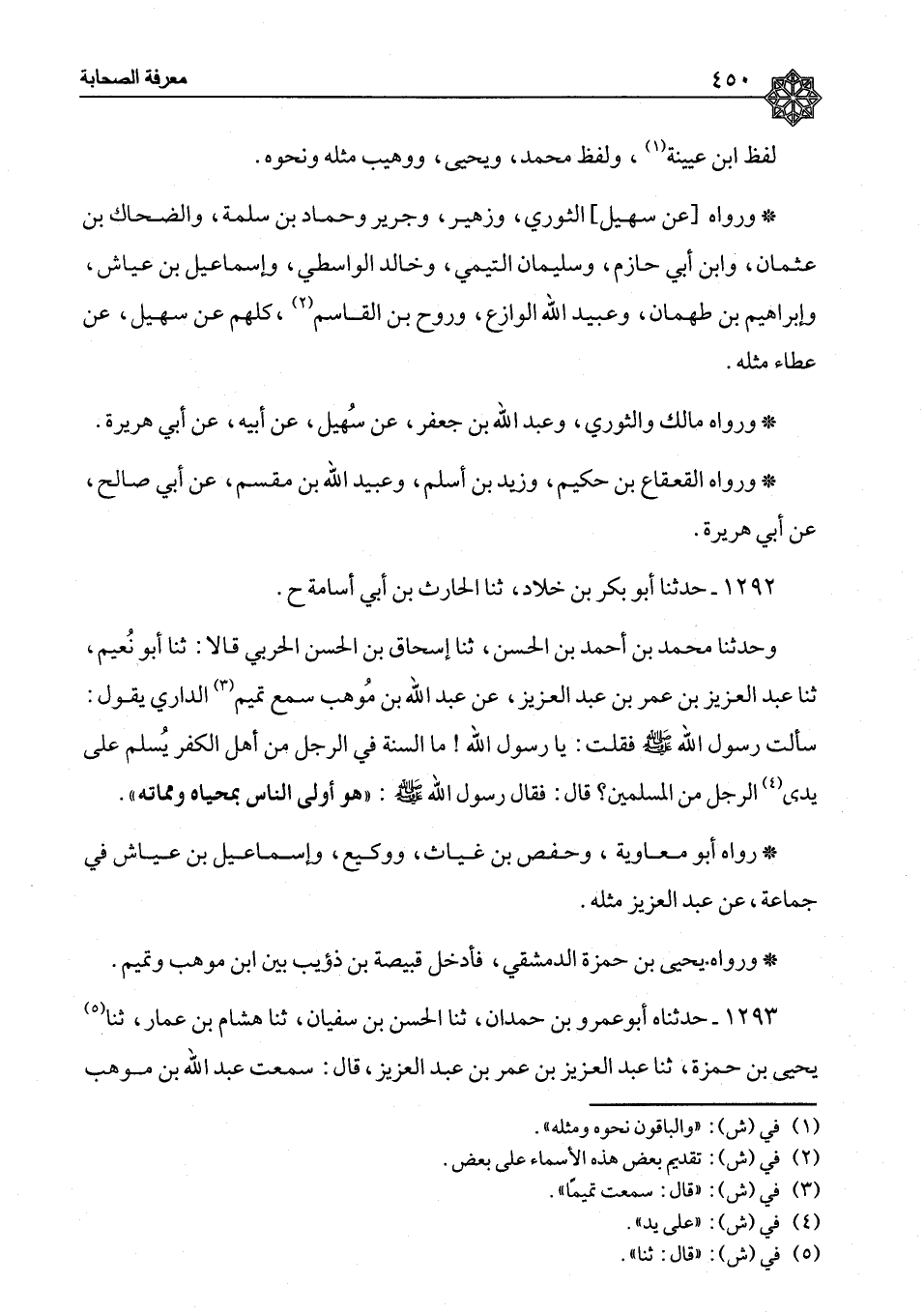 ١٢٩٢ - حَدَّثَنَا أَبُو بَكْرِ بْنُ خَلَّادٍ، ثنا الْحَارِثُ بْنُ أَبِي أُسَامَةَ ح وَحَدَّثَنَا مُحَمَّدُ بْنُ أَحْمَدَ بْنِ الْحَسَنِ، ثنا إِسْحَاقُ بْنُ الْحَسَنِ الْحَرْبِيُّ، قَالَا: ثنا أَبُو نُعَيْمٍ، ثنا عَبْدُ الْعَزِيزِ بْنُ عُمَرَ بْنِ عَبْدِ الْعَزِيزِ، عَنْ عَبْدِ اللهِ بْنِ مَوْهَبٍ، سَمِعَ تَمِيمًا الدَّارِيَّ، يَقُولُ: سَأَلْتُ رَسُولَ اللهِ صَلَّى اللَّهُ عَلَيْهِ وَسَلَّمَ، فَقُلْتُ: يَا رَسُولَ اللهِ، مَا السُّنَّةُ فِي الرَّجُلِ مِنْ أَهْلِ الْكُفْرِ يُسْلِمُ عَلَى يَدَيِ الرَّجُلِ مِنَ الْمُسْلِمِينَ؟ قَالَ: فَقَالَ رَسُولُ اللهِ صَلَّى اللَّهُ عَلَيْهِ وَسَلَّمَ: «هُوَ أَوْلَى النَّاسِ بِمَحْيَاهُ وَمَمَاتِهِ» رَوَاهُ أَبُو مُعَاوِيَةَ، وَحَفْصُ بْنُ غِيَاثٍ، وَوَكِيعٌ، وَإِسْمَاعِيلُ بْنُ عَيَّاشٍ فِي جَمَاعَةٍ، عَنْ عَبْدِ الْعَزِيزِ مِثْلَهُ. وَرَوَاهُ يَحْيَى بْنُ حَمْزَةَ الدِّمَشْقِيُّ، فَأَدْخَلَ قَبِيصَةَ بْنَ ذُؤَيْبٍ بَيْنَ ابْنِ مَوْهَبٍ وَتَمِيمٍ