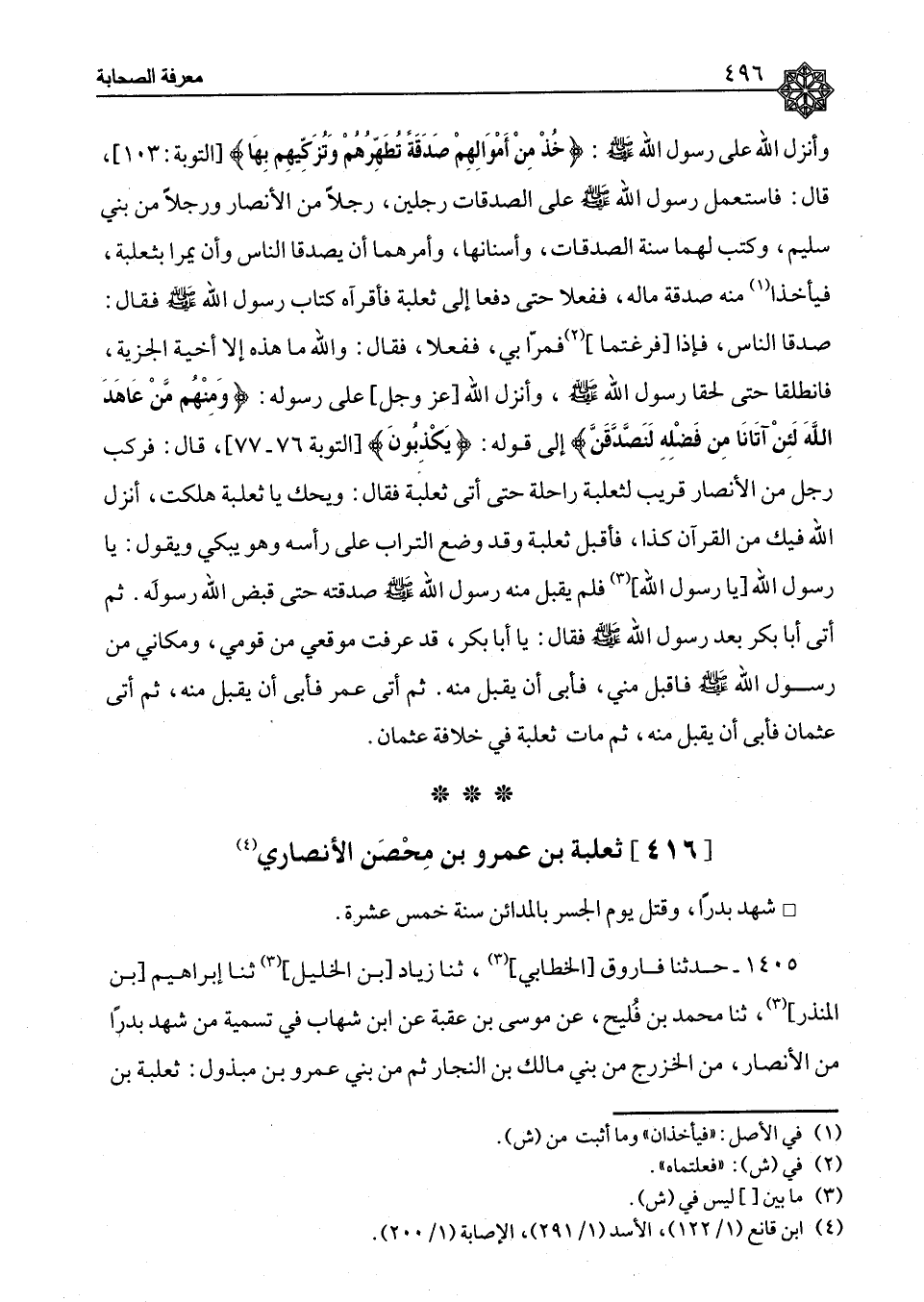 ١٤٠٥ - حَدَّثَنَا فَارُوقٌ الْخَطَّابِيُّ، ثنا زِيَادُ بْنُ الْخَلِيلِ، ثنا إِبْرَاهِيمُ بْنُ الْمُنْذِرِ، ثنا مُحَمَّدُ بْنُ فُلَيْحٍ، عَنْ مُوسَى بْنِ عُقْبَةَ، عَنِ ابْنِ شِهَابٍ، " فِي تَسْمِيَةِ مَنْ شَهِدَ بَدْرًا مِنَ الْأَنْصَارِ مِنَ الْخَزْرَجِ مِنْ بَنِي مَالِكِ بْنِ النَّجَّارِ، ثُمَّ مِنْ بَنِي عَمْرِو بْنِ مَبْذُولٍ: ثَعْلَبَةُ بْنُ ⦗٤٩٧⦘ عَمْرِو بْنِ مِحْصَنٍ "