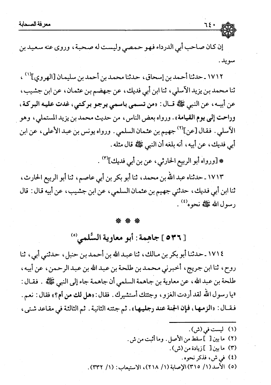 جَاهِمَةُ: أَبُو مُعَاوِيَةَ السُّلَمِيُّ