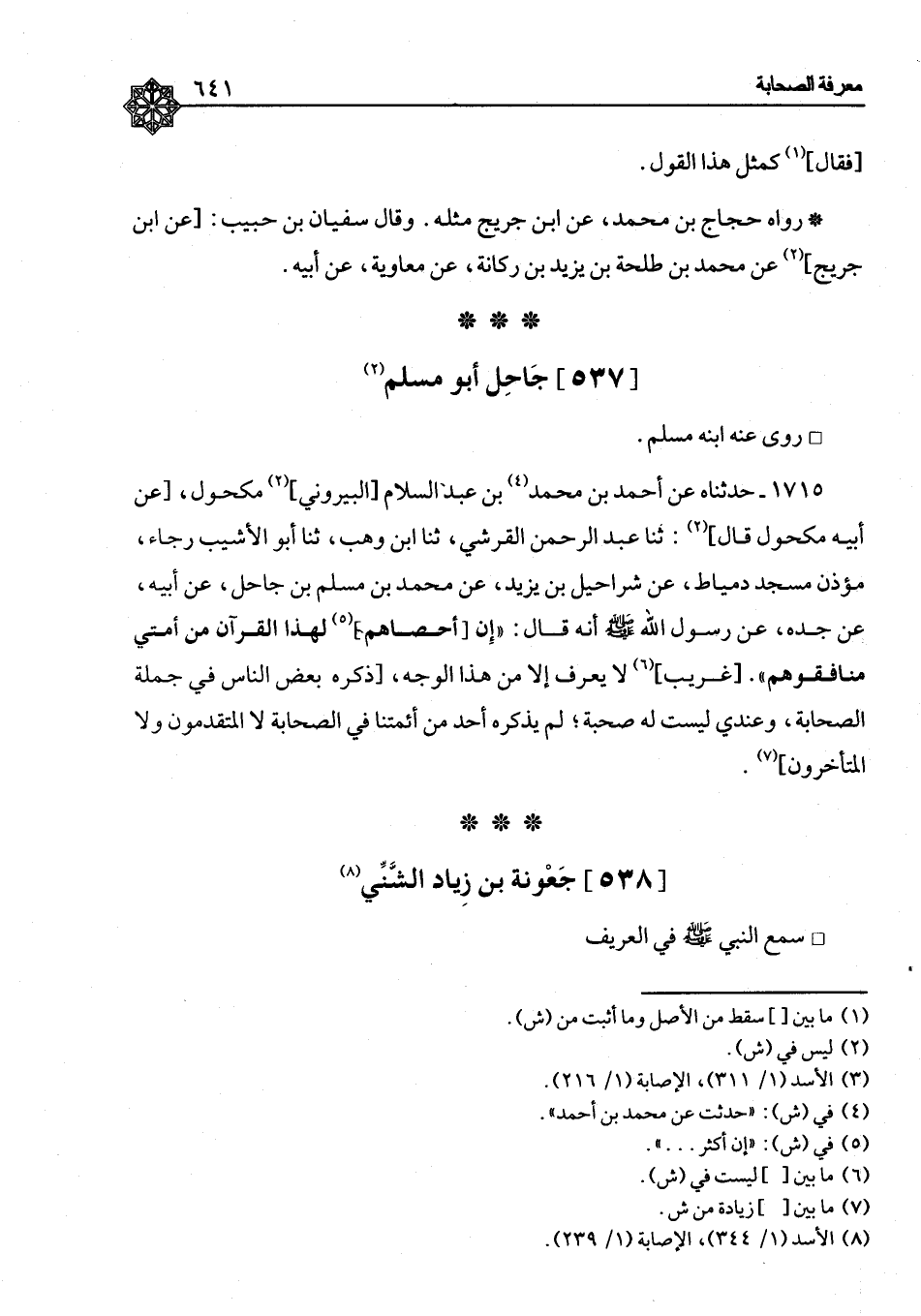جَعْوَنَةُ بْنُ زِيَادٍ الشَّنِّيُّ سَمِعَ النَّبِيَّ صَلَّى اللَّهُ عَلَيْهِ وَسَلَّمَ فِي الْعَرِيفِ