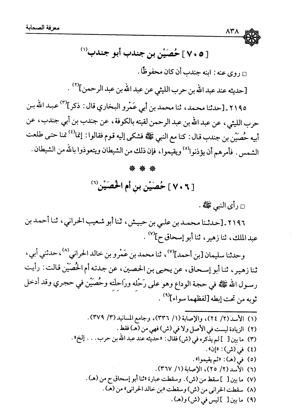 حُصَيْنُ بْنُ أُمِّ الْحُصَيْنِ رَأَى النَّبِيَّ صَلَّى اللَّهُ عَلَيْهِ وَسَلَّمَ
