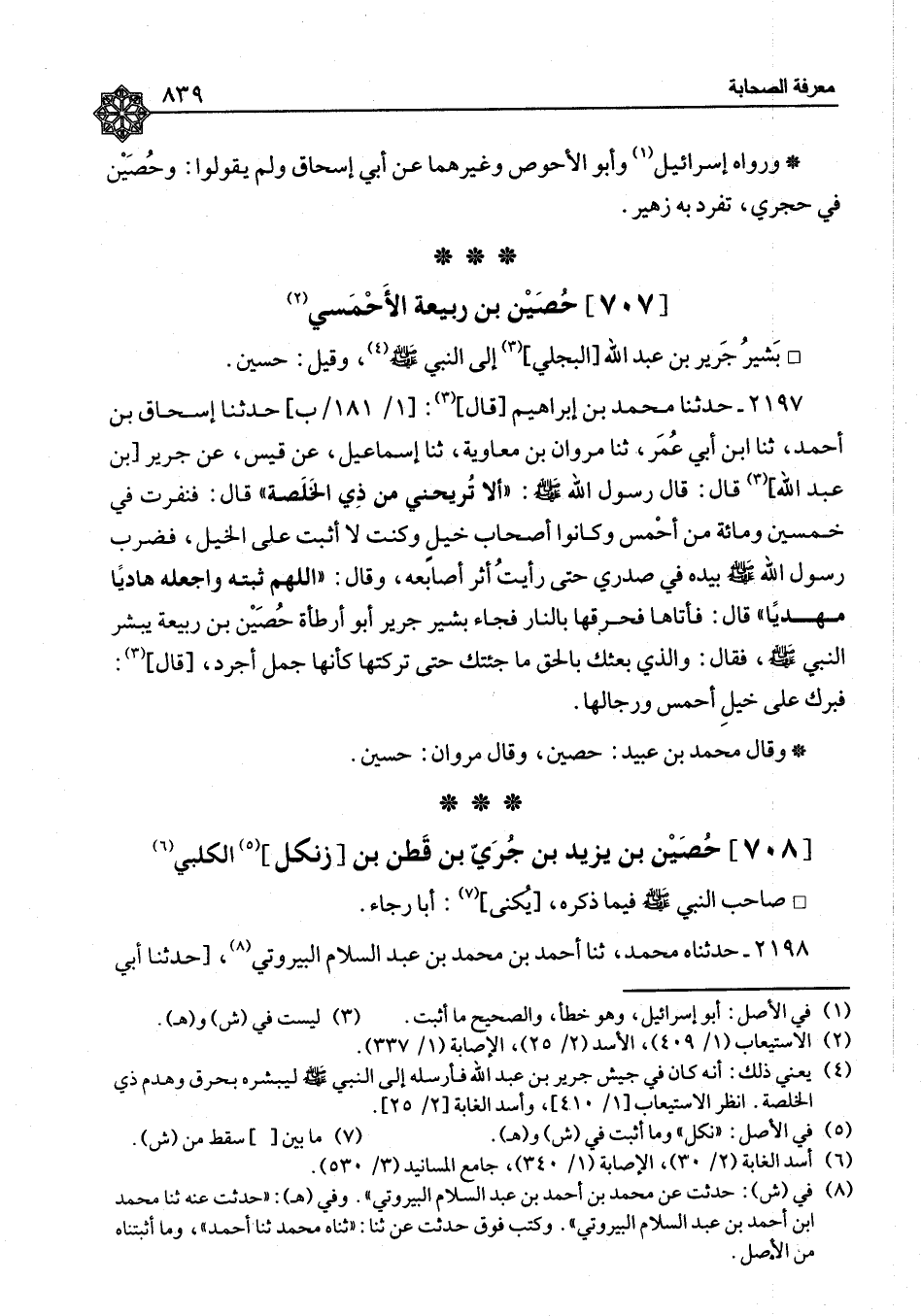 حُصَيْنُ بْنُ رَبِيعَةَ الْأَحْمَسِيُّ بَشِيرُ جَرِيرِ بْنِ عَبْدِ اللهِ الْبَجَلِيِّ إِلَى النَّبِيِّ صَلَّى اللَّهُ عَلَيْهِ وَسَلَّمَ، وَقِيلَ: حُسَيْنٌ