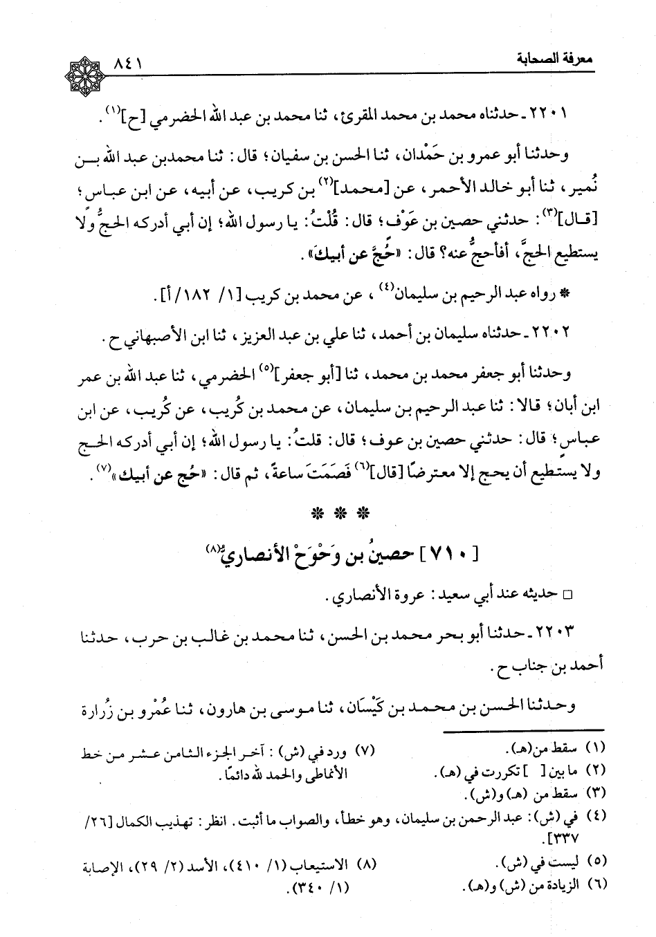 ٢٢٠١ - حَدَّثَنَاهُ مُحَمَّدُ بْنُ مُحَمَّدٍ الْمُقْرِئُ، ثنا مُحَمَّدُ بْنُ عَبْدِ اللهِ الْحَضْرَمِيُّ، ح وَحَدَّثَنَا أَبُو عَمْرِو بْنُ حَمْدَانَ، ثنا الْحَسَنُ بْنُ سُفْيَانَ، قَالَ: ثنا مُحَمَّدُ بْنُ عَبْدِ اللهِ بْنِ نُمَيْرٍ، ثنا أَبُو خَالِدٍ الْأَحْمَرُ، عَنْ مُحَمَّدِ بْنِ كُرَيْبٍ، عَنْ أَبِيهِ، عَنِ ابْنِ عَبَّاسٍ، قَالَ: حَدَّثَنِي حُصَيْنُ بْنُ عَوْفٍ، قَالَ: قُلْتُ: يَا رَسُولَ اللهِ، إِنَّ أَبِي أَدْرَكَهُ الْحَجُّ وَلَا يَسْتَطِيعُ الْحَجَّ، أَفَأَحُجُّ عَنْهُ؟ قَالَ: «حُجَّ عَنْ أَبِيكَ» رَوَاهُ عَبْدُ الرَّحِيمِ بْنُ سُلَيْمَانَ، عَنْ مُحَمَّدِ بْنِ كُرَيْبٍ