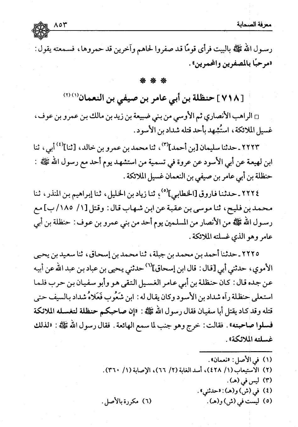 ٢٢٢٣ - حَدَّثَنَا سُلَيْمَانُ بْنُ أَحْمَدَ، ثنا مُحَمَّدُ بْنُ عَمْرِو بْنِ خَالِدٍ، ثنا أَبِي، ثنا ابْنُ لَهِيعَةَ، عَنْ أَبِي الْأَسْوَدِ، عَنْ عُرْوَةَ، فِي تَسْمِيَةِ مَنِ اسْتُشْهِدَ يَوْمَ أُحُدٍ مَعَ رَسُولِ اللهِ صَلَّى اللَّهُ عَلَيْهِ وَسَلَّمَ: حَنْظَلَةُ بْنُ أَبِي عَامِرِ بْنِ صَيْفِيِّ بْنِ النُّعْمَانِ غَسِيلُ الْمَلَائِكَةِ