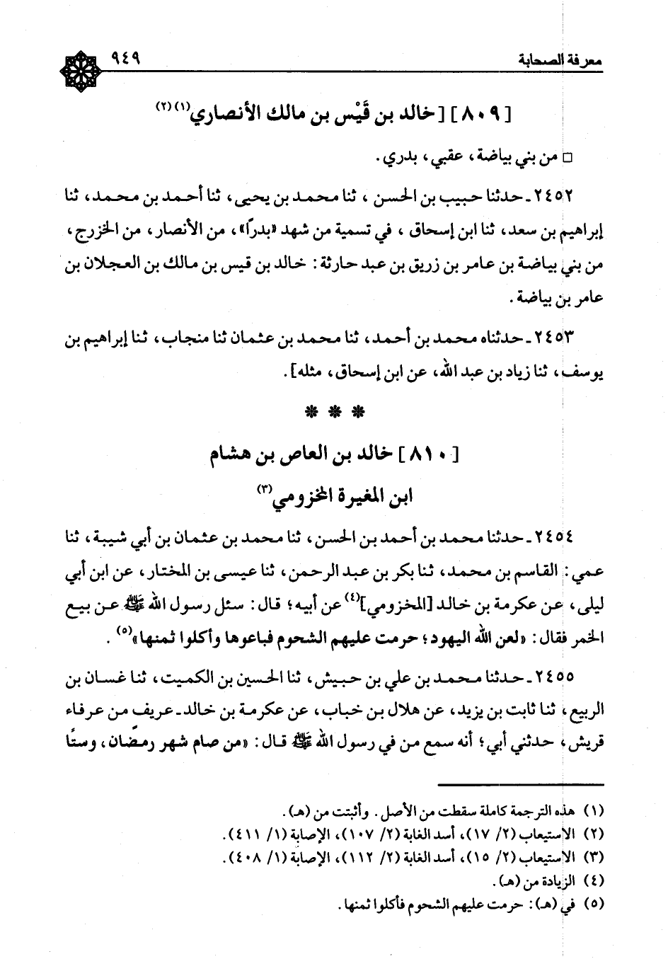 ٢٤٥٢ - حَدَّثَنَا حَبِيبُ بْنُ الْحَسَنِ، ثنا مُحَمَّدُ بْنُ يَحْيَى، ثنا أَحْمَدُ بْنُ مُحَمَّدٍ، ثنا إِبْرَاهِيمُ بْنُ سَعْدٍ، ثنا ابْنُ إِسْحَاقَ، فِي تَسْمِيَةِ مَنْ شَهِدَ بَدْرًا مِنَ الْأَنْصَارِ مِنَ الْخَزْرَجِ مِنْ بَنِي بَيَاضَةَ بْنِ عَامِرِ بْنِ زُرَيْقِ بْنِ عَبْدِ حَارِثَةَ: خَالِدُ بْنُ قَيْسِ بْنِ مَالِكِ بْنِ الْعَجْلَانِ بْنِ عَامِرِ بْنِ بَيَاضَةَ