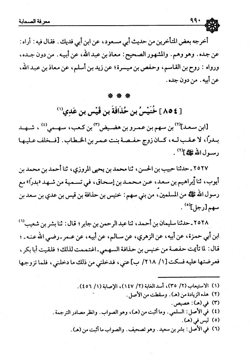 ٢٥٢٧ - حَدَّثَنَا حَبِيبُ بْنُ الْحَسَنِ، ثنا مُحَمَّدُ بْنُ يَحْيَى الْمَرْوَزِيُّ، ثنا أَحْمَدُ بْنُ مُحَمَّدِ بْنِ أَيُّوبَ، ثنا إِبْرَاهِيمُ بْنُ سَعْدٍ، عَنْ مُحَمَّدِ بْنِ إِسْحَاقَ، فِي " تَسْمِيَةِ مَنْ شَهِدَ بَدْرًا مَعَ رَسُولِ اللهِ صَلَّى اللَّهُ عَلَيْهِ وَسَلَّمَ مِنَ الْمُسْلِمِينَ، مِنْ بَنِي سَهْمٍ: خُنَيْسُ بْنُ حُذَافَةَ بْنِ قَيْسِ بْنِ عَدِيِّ بْنِ سَعْدِ بْنِ سَهْمٍ رَجُلٌ
