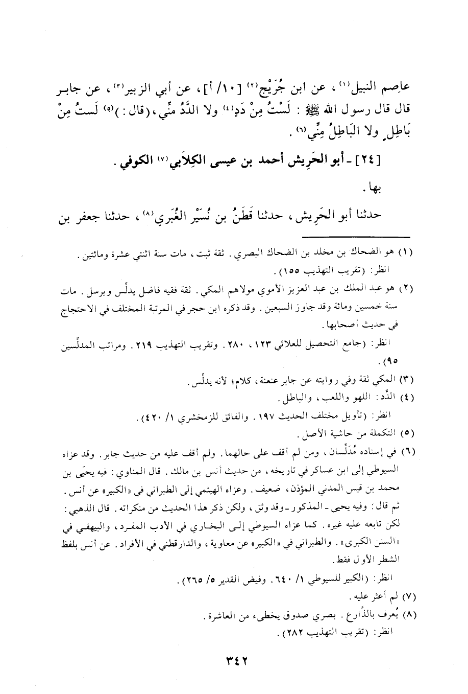 24 - أَبُو الْحَرِيشِ أَحْمَدُ بْنُ عِيسَى الْكِلَابِيُّ الْكُوفِيُّ، بِهَا