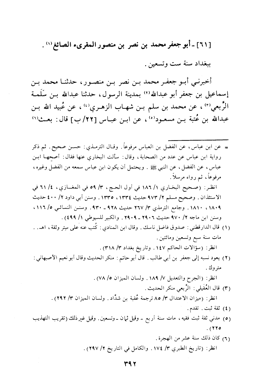 61 - أَبُو جَعْفَرٍ مُحَمَّدُ بْنُ نَصْرِ بْنِ مَنْصُورٍ الْمُقْرِئُ الصَّائِغُ بِبَغْدَادَ سَنَةَ سِتٍّ وَتِسْعِينَ