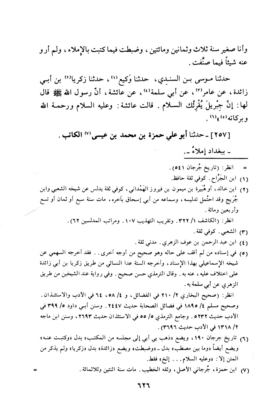 257 - حَدَّثَنَا أَبُو عَلِيٍّ حَمْزَةُ بْنُ مُحَمَّدِ بْنِ عِيسَى الْكَاتِبُ بِبَغْدَادَ إِمْلَاءً -[627]- حَدَّثَنَا مُحَمَّدُ بْنُ إِسْحَاقَ بْنِ مُحَمَّدِ بْنِ عَبْدِ الرَّحْمَنِ الْمُسَيَّبِيُّ، حَدَّثَنَا عَبْدُ اللَّهِ بْنُ نَافِعٍ، عَنْ حَمَّادِ بْنِ أَبِي حُمَيْدٍ، عَنْ أَبِي حَازِمٍ، عَنْ سَهْلِ بْنِ سَعْدٍ، أَنَّ النَّبِيَّ صَلَّى اللهُ عَلَيْهِ وَسَلَّمَ قَالَ: «لَأَنْ أُصَلِّيَ ثُمَّ أَجْلِسَ حَتَّى تَطْلُعَ الشَّمْسُ أَحَبُّ إِلَيَّ مِنْ أَنْ أَحْمِلَ عَلَى جِيَادِ الْخَيْلِ فِي سَبِيلِ اللَّهِ حَتَّى تَطْلُعَ الشَّمْسُ»