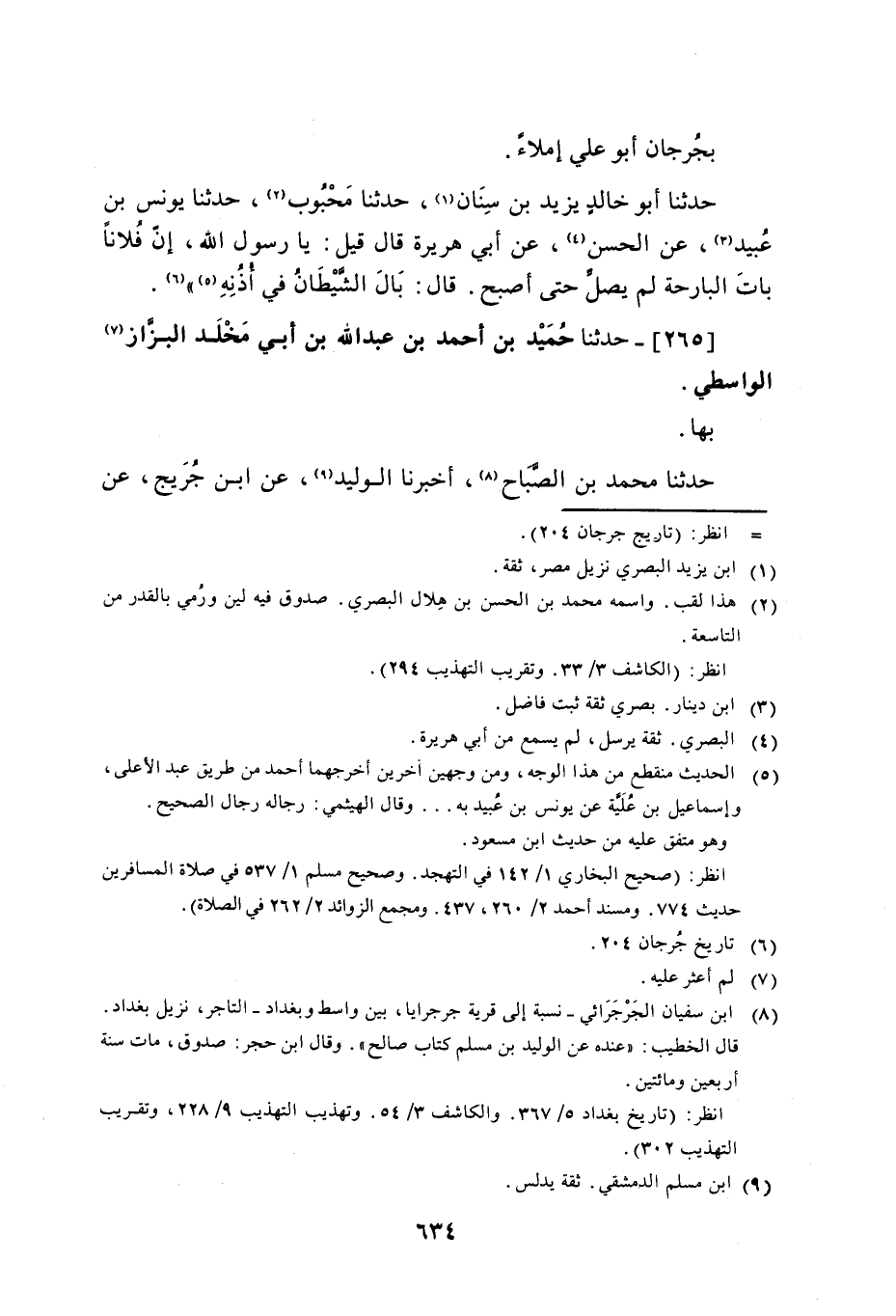 265 - حَدَّثَنَا حُمَيْدُ بْنُ أَحْمَدَ بْنِ عَبْدِ اللَّهِ بْنِ أَبِي مَخْلَدٍ الْبَزَّازُ الْوَاسِطِيُّ بِهَا، حَدَّثَنَا مُحَمَّدُ بْنُ الصَّبَّاحِ، أَخْبَرَنَا الْوَلِيدُ، عَنِ ابْنِ جُرَيْجٍ، عَنْ -[635]- عَمْرِو بْنِ شُعَيْبٍ، عَنْ أَبِيهِ، عَنْ جَدِّهِ، قَالَ: قَالَ رَسُولُ اللَّهِ صَلَّى اللهُ عَلَيْهِ وَسَلَّمَ: «مَنْ تَطَبَّبَ وَلَمْ يُعْلَمْ مِنْهُ طِبٌّ فَهُوَ ضَامِنٌ»