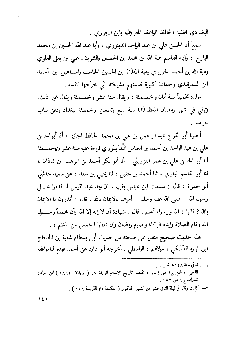 أخرجه أبو عيسى الترمذي محمد بن عيسى في جامعه عن أبي كريب محمد بن العلاء الهمداني الكوفي فوقع لنا موافقة عالية بحمد الله ومنه. وأخرجه البخاري عن صدقة بن الفضل. وأخرجه مسلم عن محمد بن عبد الله بن نمير. وأخرجه ابن ماجة عن محمد بن عبد الله بن نمير وعلي بن محمد، ثلاثتهم عن أبي معاوية فوقع لنا بدلاً عالياً بحمد الله ومنه.