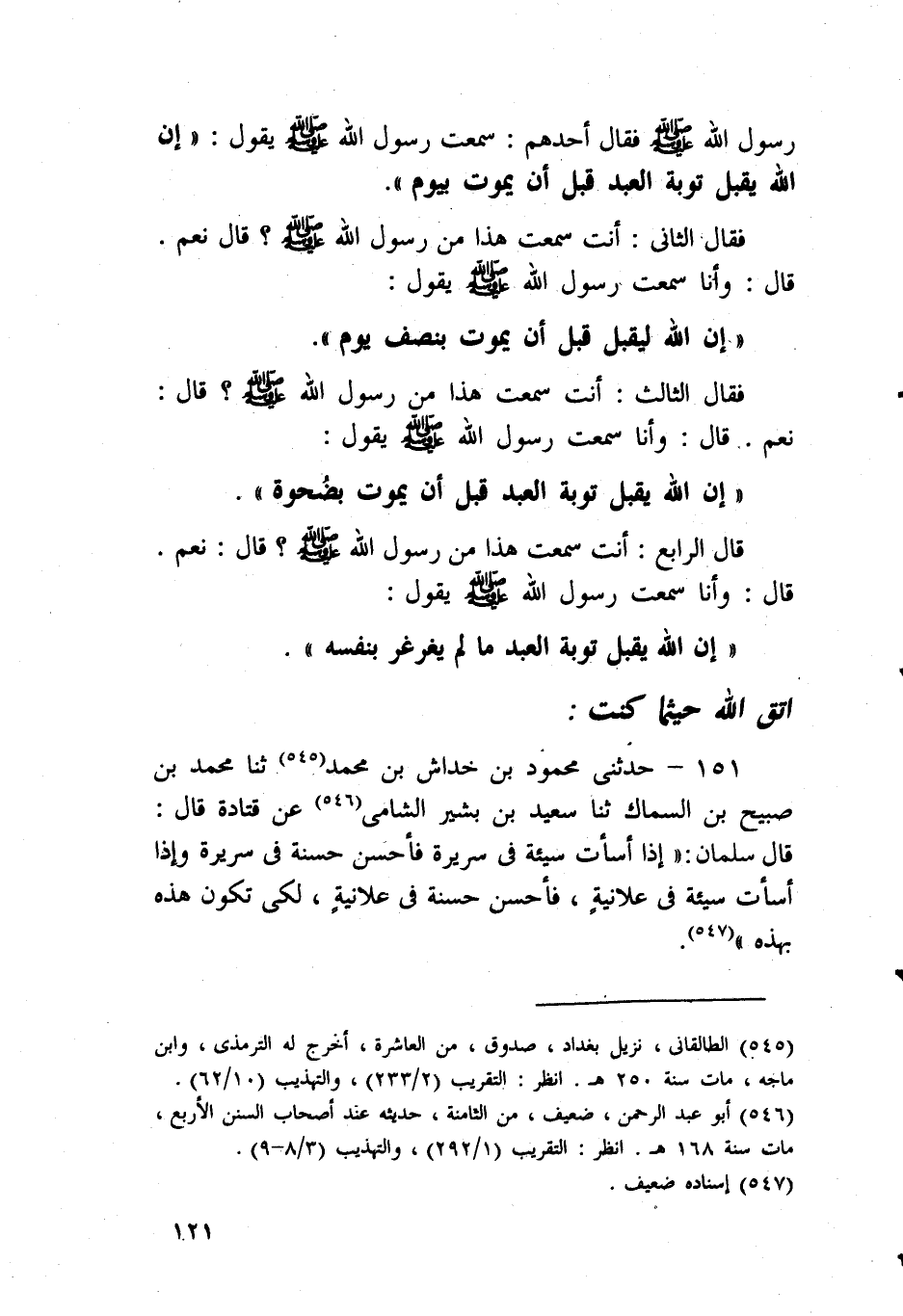 151 - حَدَّثَنِي مَحْمُودُ بْنُ خِدَاشِ بْنِ مُحَمَّدٍ، ثنا مُحَمَّدُ بْنُ صُبَيْحِ بْنِ السَّمَّاكِ، ثنا سَعِيدُ بْنُ بَشِيرٍ الشَّامِيُّ، عَنْ قَتَادَةَ، قَالَ: قَالَ سَلْمَانُ: «§إِذَا أَسَأْتَ سَيِّئَةً فِي سَرِيرَةٍ فَأَحْسِنْ حَسَنَةً فِي سَرِيرَةٍ وَإِذَا أَسَأْتَ سَيِّئَةً فِي عَلَانِيَةٍ، فَأَحْسِنْ حَسَنَةً فِي عَلَانِيَةٍ، لِكَيْ تَكُونَ هَذِهِ بِهَذِهِ»