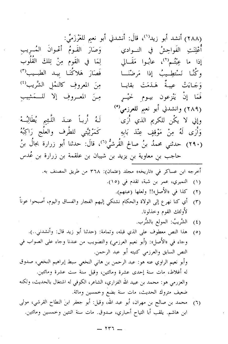 288 - أَنْشَدَ أَبُو زَيْدٍ قَالَ: أَنْشَدَنِي أَبُو نُعَيْمٍ للْعَزْرَمِيُّ: