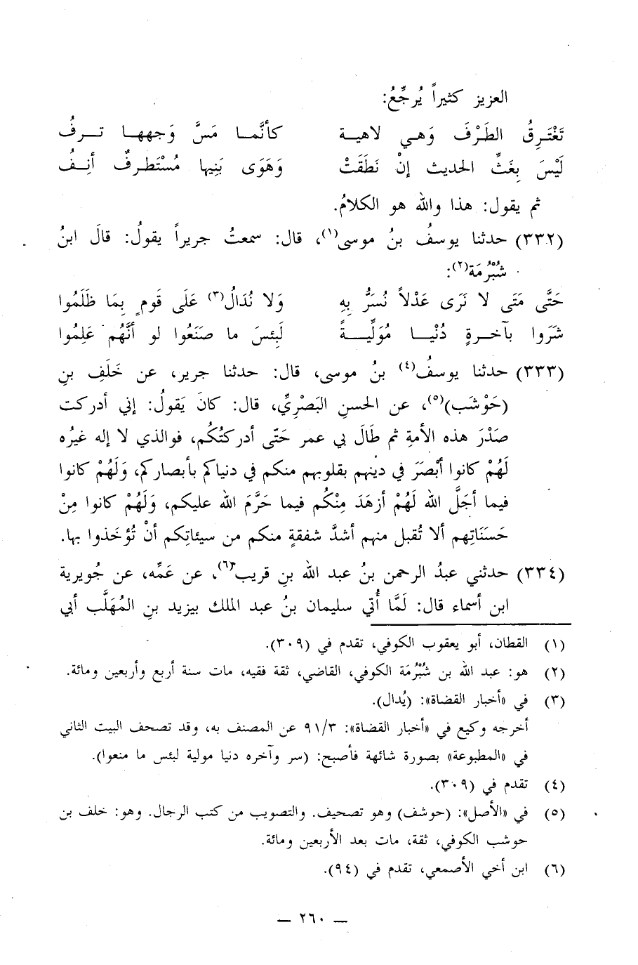332 - حَدَّثَنَا يُوسُفُ بْنُ مُوسَى، قَالَ: سَمِعْتُ جَرِيرًا، يَقُولُ: قَالَ §ابْنُ شُبْرُمَةَ: