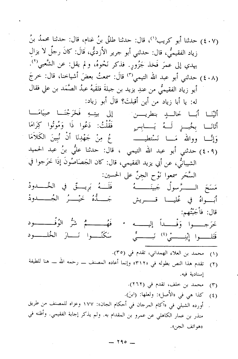 409 - حَدَّثَنِي أَبُو عَبْدِ اللَّهِ التَّيْمِيُّ، قَالَ: حَدَّثَنَا عَلِيُّ بْنُ عَبْدِ الْحَمِيدِ الشَّيْبَانِيُّ، عَنْ أَبِي يَزِيدَ الْفُقَيْمِيِّ قَالَ: كَانَ الْجَصَّاصُونَ إِذَا خَرَجُوا فِي السَّحَرِ §سَمِعُوا نَوْحَ الْجِنِّ عَلَى الْحُسَيْنِ: