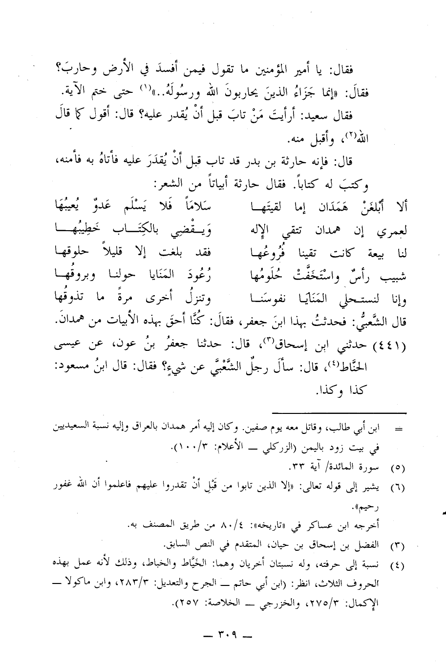 441 - حَدَّثَنِي ابْنُ إِسْحَاقَ، قَالَ: حَدَّثَنَا جَعْفَرُ بْنُ عَوْنٍ، عَنْ عِيسَى الْحَنَّاطِ، قَالَ: §سَأَلَ رَجُلٌ الشَّعْبِيَّ عَنْ شَيْءٍ، فَقَالَ: قَالَ ابْنُ مَسْعُودٍ كَذَا وَكَذَا , -[310]- فَقَالَ: أَخْبِرْنِي بِرَأْيِكَ، فَقَالَ: أَلَا تَرَوْنَ إِلَى هَذَا؟ أُخْبِرُهُ عَنِ ابْنِ مَسْعُودٍ وَيَسْأَلُنِي رَأْيِي. اللَّهِ تَبَارَكَ وَتَعَالَى آثَرُ عِنْدِي وَدِينِي مِنْ أَنْ أَقُولَ فِيهَا بِرَأْيِي. وَاللَّهِ لَأَنْ أَتَغَنَّى بِغَنِيَّةٍ أَحَبُّ إِلَيَّ مِنْ أَنْ أَقُولَ فِيهَا بِرَأْيِي