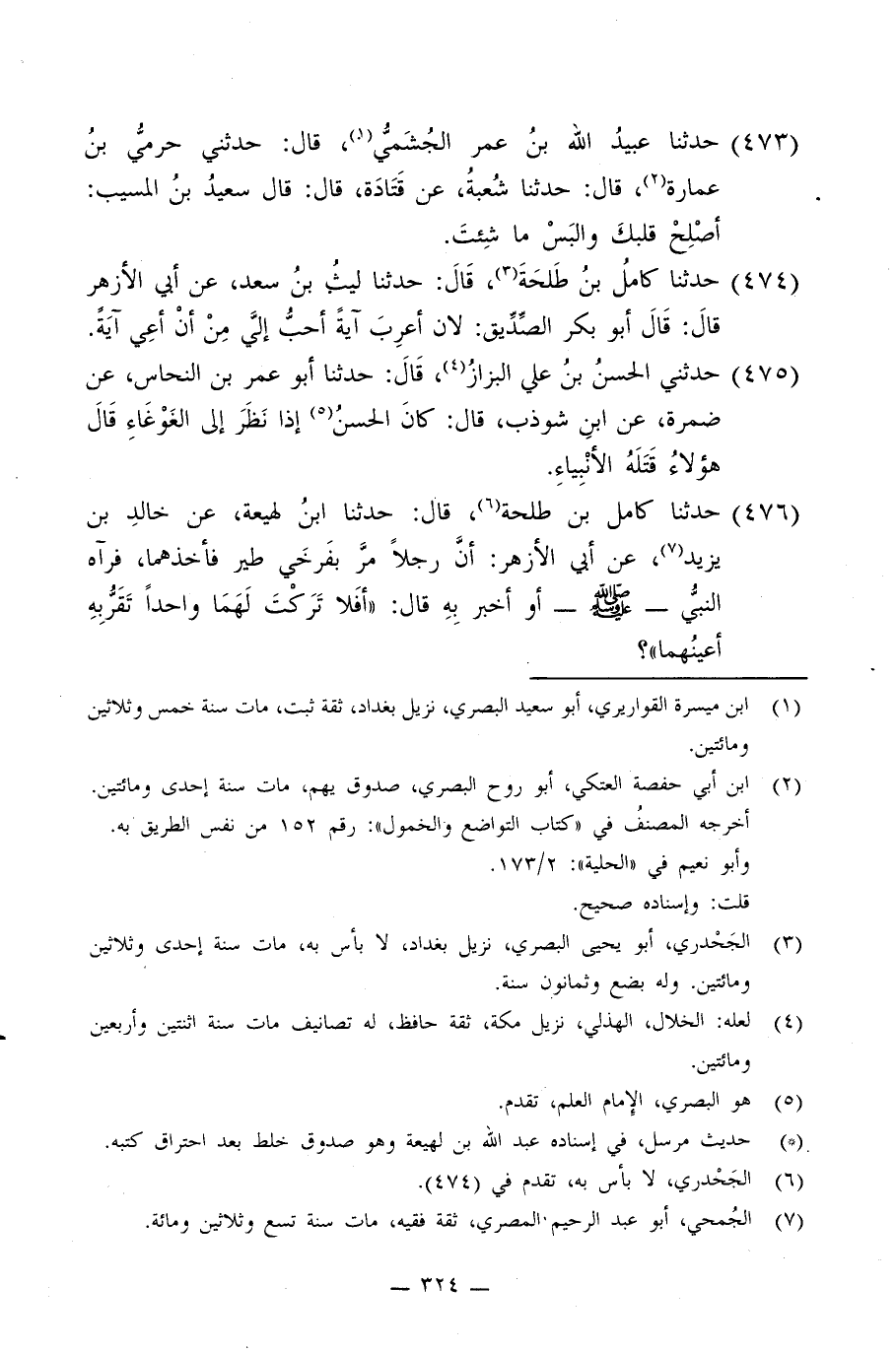 475 - حَدَّثَنِي الْحَسَنُ بْنُ عَلِيٍّ الْبَزَّازُ، قَالَ: حَدَّثَنَا أَبُو عُمَرَ بْنُ النَّحَّاسِ، عَنْ ضَمْرَةَ، عَنِ ابْنِ شَوْذَبٍ، قَالَ: §كَانَ الْحَسَنُ إِذَا نَظَرَ إِلَى الْغَوْغَاءِ قَالَ: هَؤُلَاءِ قِتْلَةُ الْأَنْبِيَاءِ