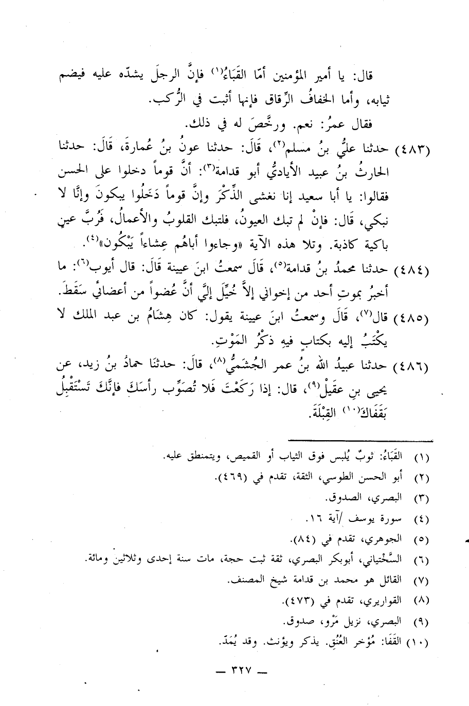 485 - قَالَ: قَالَ: وَسَمِعْتُ ابْنَ عُيَيْنَةَ، يَقُولُ: §كَانَ هِشَامُ بْنُ عَبْدِ الْمَلِكِ لَا يَكْتُبُ إِلَيْهِ بِكِتَابٍ فِيهِ ذِكْرُ الْمَوْتِ