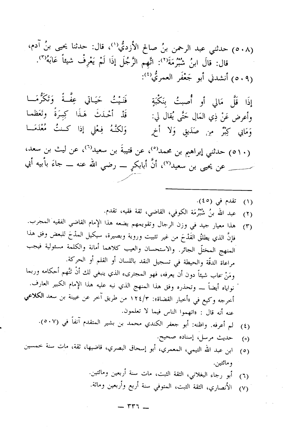 508 - حَدَّثَنِي عَبْدُ الرَّحْمَنِ بْنُ صَالِحٍ الْأَزْدِيُّ، قَالَ: حَدَّثَنَا يَحْيَى بْنُ آدَمَ، قَالَ: قَالَ ابْنُ شُبْرُمَةَ: §اتَّهِمِ الرَّجُلَ إِذَا لَمْ يَعْرِفْ شَيْئًا عَابَهُ