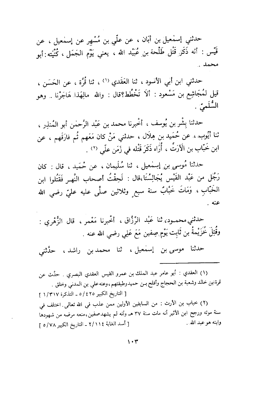 435 - حَدثنَا يُوسُف بن يَعْقُوب حَدثنِي أَبُو بكر بن عَيَّاش عَن جواد الضَّبِّيّ قَالَ أول رَأس بعث فِي الْإِسْلَام رَأس عَمْرو بن الْحمق بَعثه زِيَاد إِلَى مُعَاوِيَة