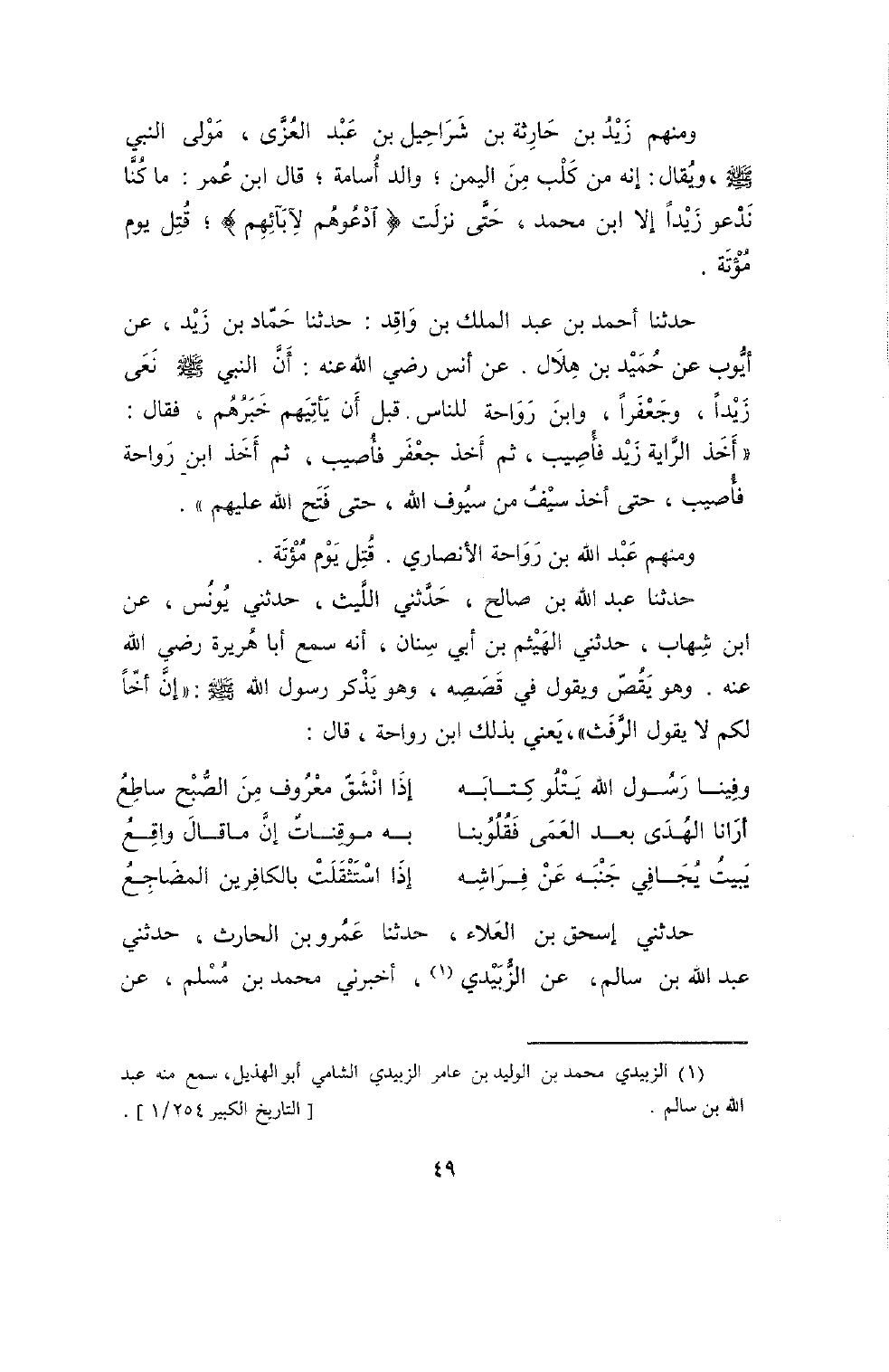 185 - حَدثنِي الصَّلْت بن مُحَمَّد أَخْبَرَنِي سَعِيدُ بْنُ مُسْلِمِ بْنِ جُنْدُبٍ قَالَ سَمِعت أبي مُسْلِمٍ قَالَ كُنْتُ أَنَا وَسَعِيدُ بْنُ الْمُسَيِّبِ مَعَ بن عمر فَدخل على بن مُطِيع ليَالِي حرَّة قَالَ أَلَمْ تَعْلَمْ مَا قَالَ عُمَرُ عَامَ خَرَجَ يَتَعَاهَدُ عُمَّالَهُ بِبَابِ الْجَابِيَةِ مِنْ دِمَشْقَ لما لقِيه أَبُو مُوسَى الْأَشْعَرِيّ
