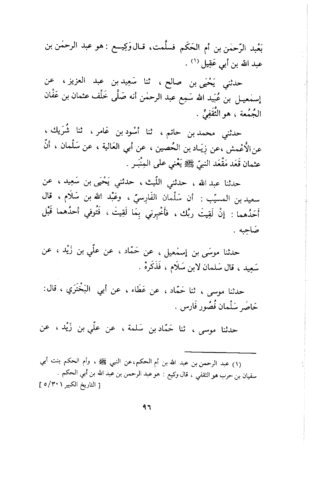 395 - حَدثنَا عبد الله حَدثنِي مُعَاوِيَةُ عَنْ حَاتِمِ بْنِ حُرَيْثٍ وَغَيْرِهِ مِنْ مشيخة الْجنَّة قَالَ لَمَّا بَايَعَ أَهْلُ الْعِرَاقِ لِلْحَسَنِ بْنِ عَليّ جَاءَ حَتَّى ولى مُعَاوِيَة فَرفع عَمْرٌو وَأَبُو الأَعْوَرِ عَمْرُو بْنُ سُفْيَانَ السُّلَمِيُّ فَلَمَّا فَرَغَا قَالَ أَنْشُدُكَ اللَّهَ يَا مُعَاوِيَةُ أَمَا تَعْلَمُ أَنَّ رَسُولَ اللَّهِ صَلَّى اللَّهُ عَلَيْهِ وَسَلَّمَ لَعَنَ يَوْمَ الأَحْزَابِ صَاحِبَ مُقَدِّمَتِهِمْ وَصَاحب ساقتهم وَصَاحب مجنبتيهم وَأَيْنَ كَانَ عَمْرٌو مِنْ أُولَئِكَ وَأَنْشُدُكَ يَا مُعَاوِيَةُ أَمَا تَعْلَمُ أَنَّ النَّبِيَّ صَلَّى اللَّهُ عَلَيْهِ وَسلم لعن بنى دعل وَذَكْوَانَ وَعَمْرِو بْنِ سُفْيَانَ وَكَانَ عَلَى أَبِي الأَعْوَرِ اثْنَتَانِ لَعَنَهُ وَلَعَنَ قَوْمَهُ فَقَالَ مُعَاوِيَةُ وَأَنَا أَشْهَدُ سَمِعْتُ رَسُولَ اللَّهِ صَلَّى اللَّهُ عَلَيْهِ وَسَلَّمَ يَقُولُ أَيُّمَا أَحَدٍ لَعَنْتُهُ فِي الْجَاهِلِيَّةِ ثُمَّ دَخَلَ فِي الإِسْلامِ فَإِنَّ لَعْنَتِي عَلَيْهِ صَلاةٌ وَهِيَ لَهُ زَكَاةٌ