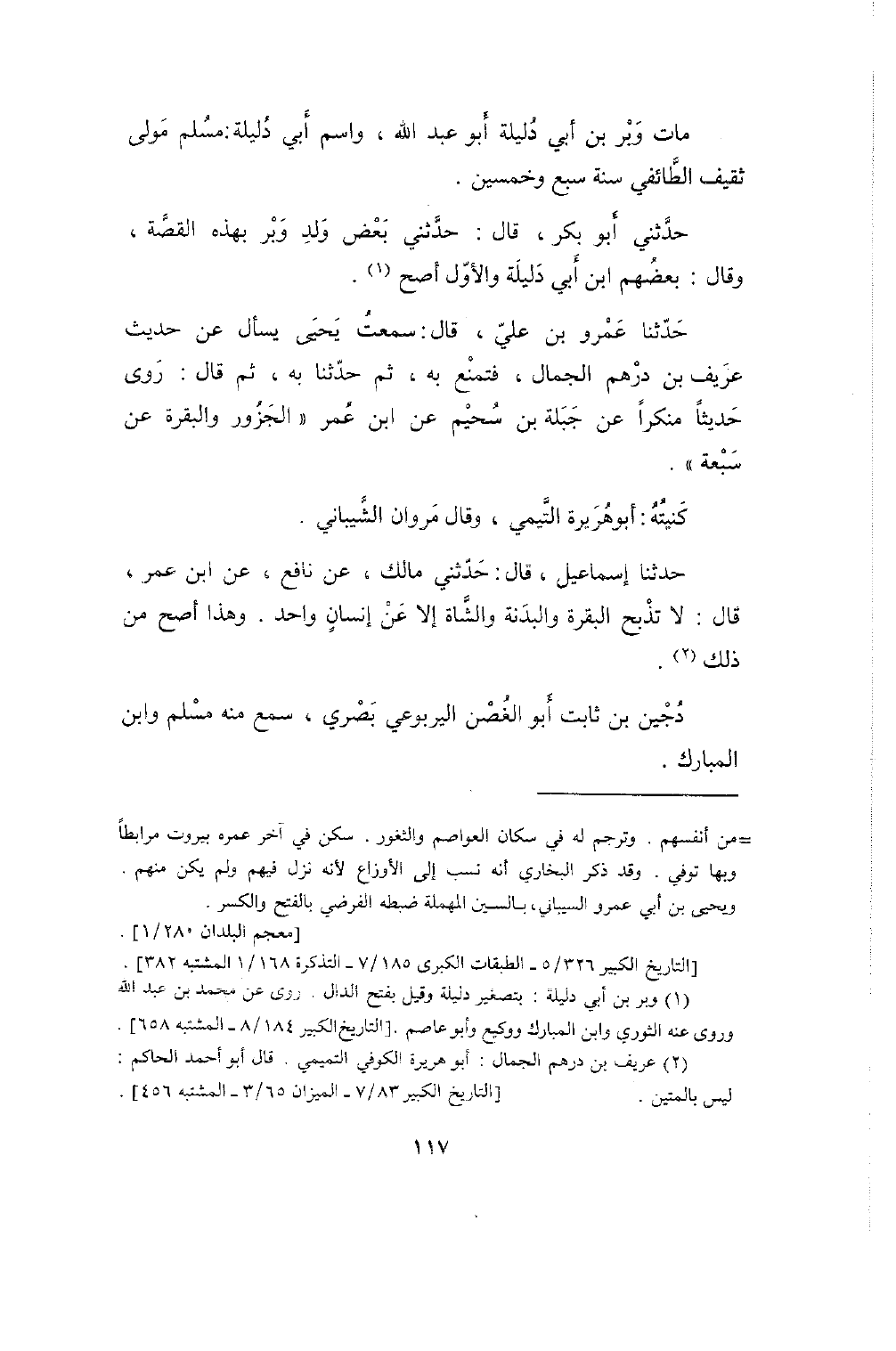 1999 - حَدثنَا إِبْرَاهِيم بن مُوسَى قَالَ سَمِعت عِيسَى بن يُونُس حَدثنِي على بن سعيد بن عبد الْعَزِيز وَلم يكن عبد الرَّحْمَن بن يزِيد من أجلاسها قَالَ الْوَلِيد كَانَ لعبد الرَّحْمَن كتاب سَمعه وَكتاب آخر لم يسمعهُ وَأما أهل الْكُوفَة فرووا عَن عبد الرَّحْمَن بن يزِيد بن جَابر وَهُوَ بن يزِيد بن تَمِيم لَيْسَ بِابْن جَابر وَابْن تَمِيم مُنكر الحَدِيث