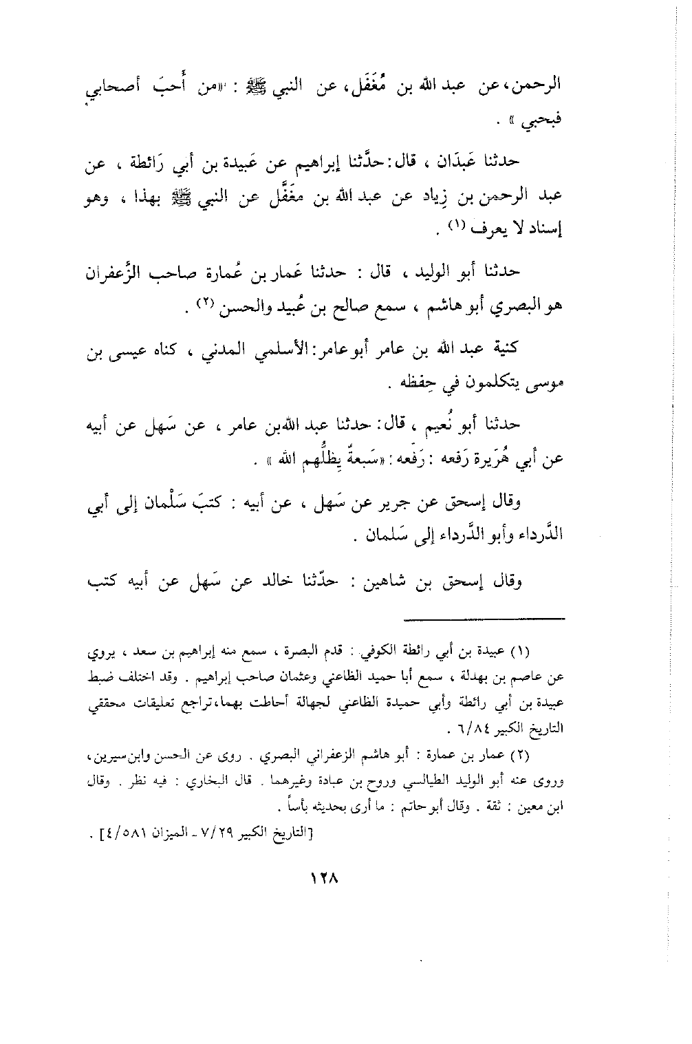 2035 - حَدَّثَنِي عَمْرو بن عَليّ قَالَ سَمِعت سلم بن قُتَيْبَة أتيت خَالِدا العَبْد فَإِذا مَعَه درج فِيهِ حَدثنَا الْحسن حَدثنَا الْحُسَيْن فانفلت الدرج من يَده فَإِذا فِي أَوله هِشَام بن حسان قد محاه قلت مَا هَذَا قَالَ هَذَا كتبت أَنا وَهِشَام عَن الْحسن قلت تكون مَعَ هِشَام وتكتب فِيهِ هِشَام قَالَ مَا أعرفني بك أَلَسْت خرجت مَعَ إِبْرَاهِيم
