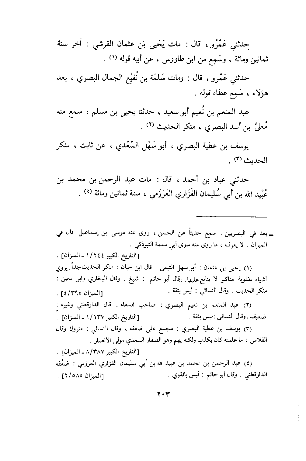 2311 - عبد الصَّمد بن سُلَيْمَان الْأَزْرَق عَن خصيب بن حجدر سمع مِنْهُ سعيد بن سُلَيْمَان عِنْده مَنَاكِير