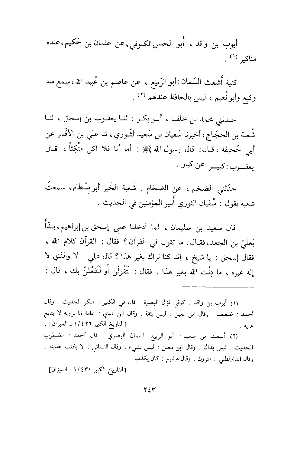 2460 - حَدثنِي الْفضل بن يَعْقُوب ثَنَا عبد الله بن جَعْفَر الرقي قَالَ مَاتَ عِيسَى بن يُونُس سنة سبع وَثَمَانِينَ وَمِائَة وَهُوَ أَخُو إِسْرَائِيل بن يُونُس بن أبي إِسْحَاق أَبُو عَمْرو السبيعِي الْهَمدَانِي الكوفى سكن نَاحيَة الشَّام