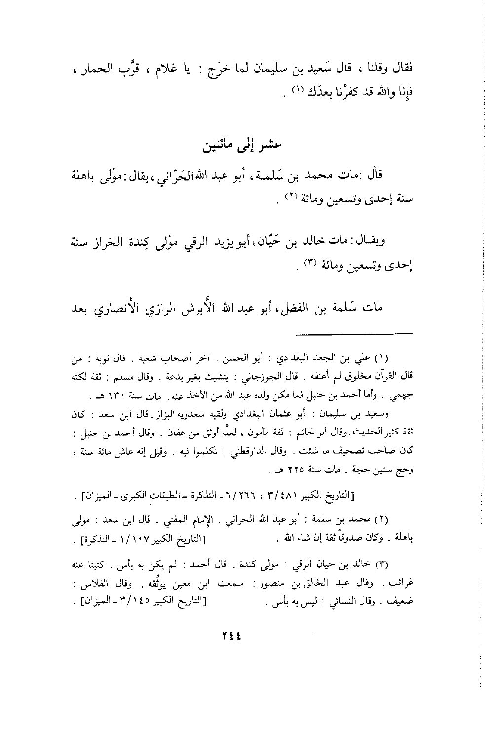 2463 - حَدَّثَنِي عَمْرو بن عِيسَى أَبُو عُثْمَان قَالَ مَاتَ مُحَمَّد بن سَوَاء سنة سبع وَثَمَانِينَ وَمَات فِيهَا مُعْتَمر وَمَات بشر بن الْمفضل سنة سِتّ
