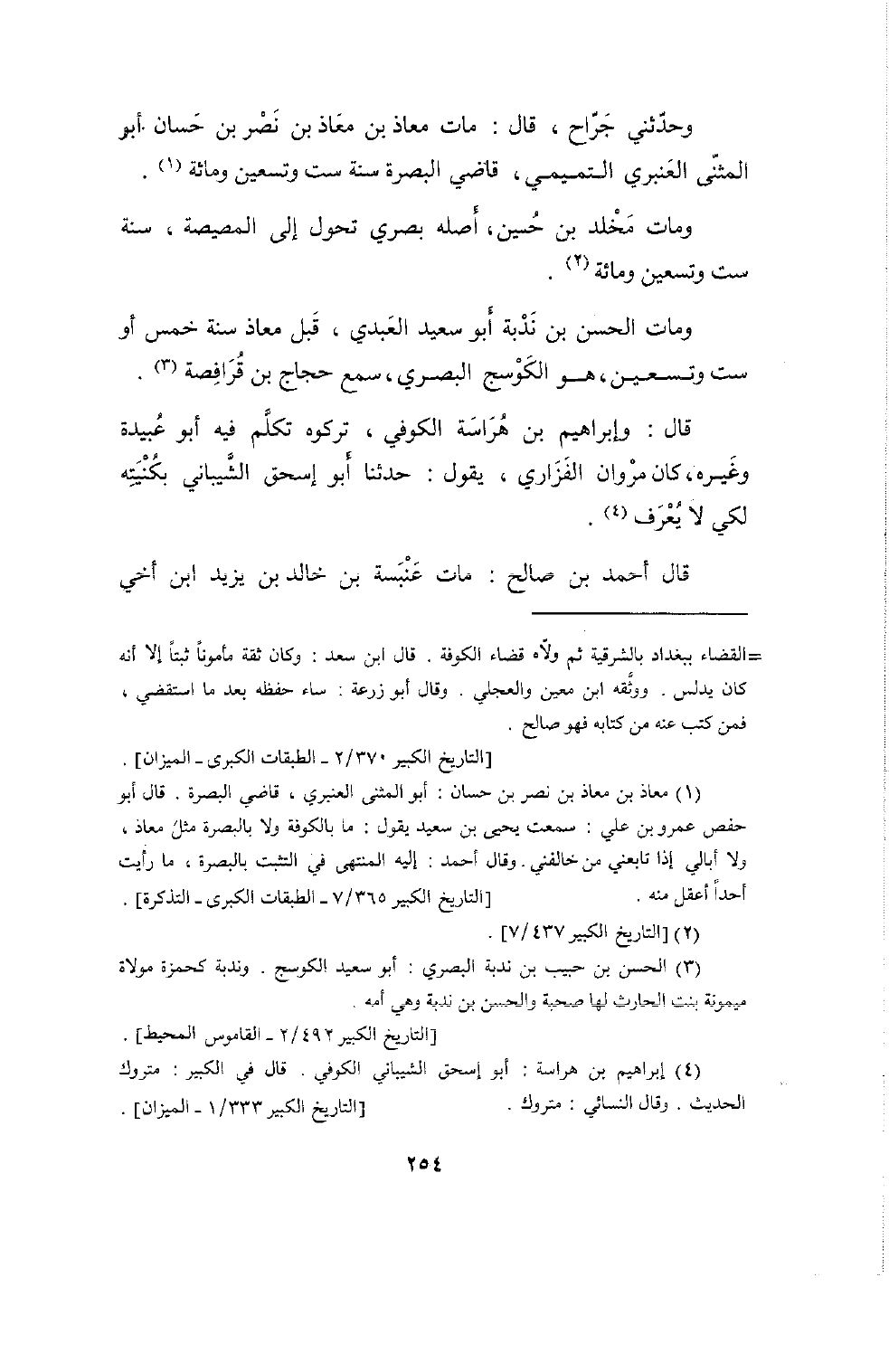 2507 - يحيى بن يعلى الْأَسْلَمِيّ الْقَطوَانِي وقطوان مَوضِع بِالْكُوفَةِ سمع حَيْوَة وَيُونُس بن خباب سمع مِنْهُ ضرار وجندل مُضْطَرب الحَدِيث زَكَرِيَّا بن مَنْظُور بن ثَعْلَبَة بن أبي مَالك أَبُو يحيى الْقرظِيّ مُنكر الحَدِيث مدنِي سَمِعت الْحميدِي يتَكَلَّم فِيهِ