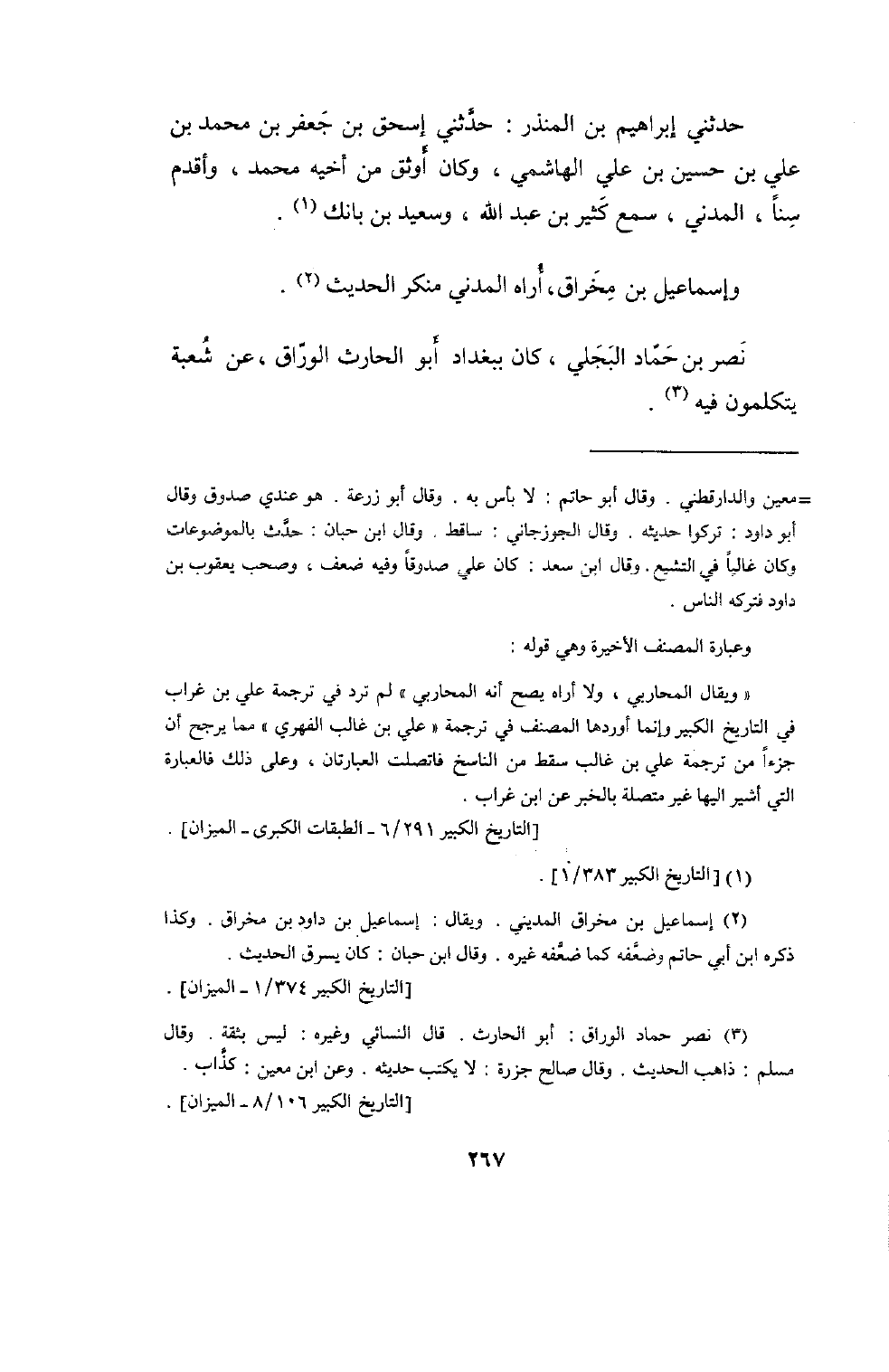 2557 - قَالَ سعيد بن سُلَيْمَان لما أدخلنا على إِسْحَاق بن إِبْرَاهِيم بَدَأَ يعلى بن الْجَعْد فَقَالَ مَا تَقول فِي الْقُرْآن فَقَالَ الْقُرْآن كَلَام الله فَقَالَ إِسْحَاق يَا شيخ إننا كُنَّا نرَاك بِغَيْر هَذَا قَالَ عَليّ لَا وَالَّذِي لَا إِلَه غَيره مَا دنت الله بِغَيْر هَذَا فَقَالَ لتقولن أَو لنفعلن بك قَالَ فَقَالَ وَقُلْنَا قَالَ سعيد بن سُلَيْمَان لما خرج يَا غُلَام قرب الْحمار فَإنَّا وَالله قد كفرنا بعْدك