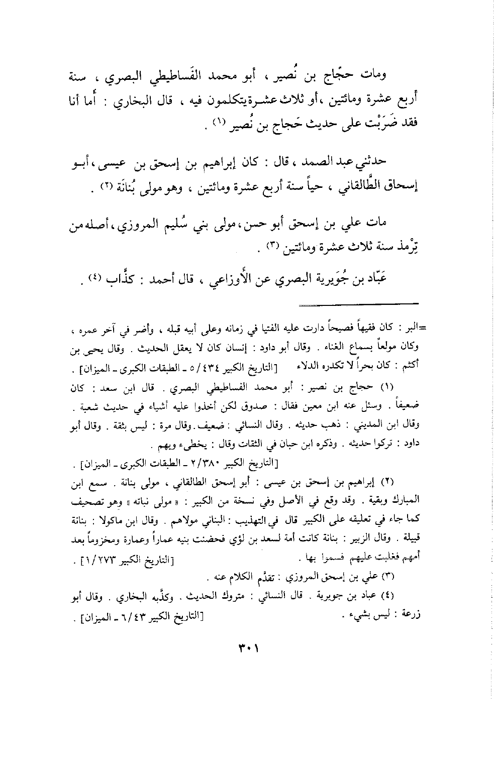2684 - حَدَّثَنِي هَارُون بن سُفْيَان قَالَ مَاتَ عبد الصَّمد بن جَابر الضَّبِّيّ أَبُو الْفضل سنة ثَلَاث أَو أَربع وَمِائَتَيْنِ وَكَانَ على شرطة زُهَيْر فَقلت لأبي نعيم فَقَالَ كَانَ يتقشف لي زمن شريك كوفى الأَصْل سكن بَغْدَاد التقشف التزهد