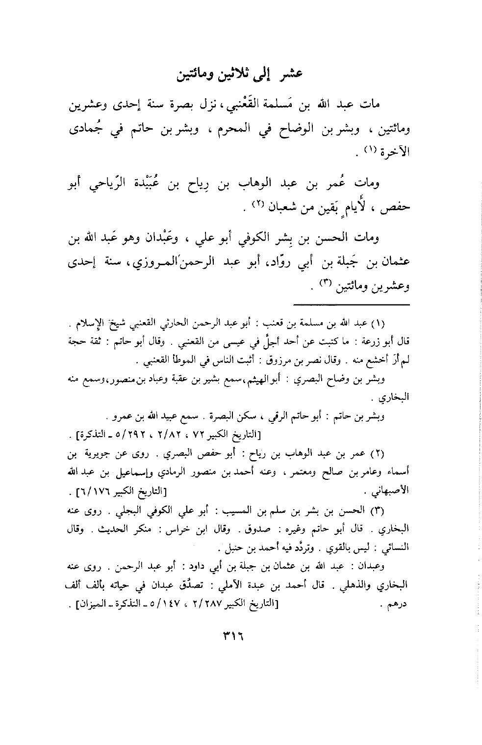 2739 - وَيُقَال مَاتَ خلف بن تَمِيم وَأَبُو جَعْفَر مُحَمَّد بن جَعْفَر الْمَدَائِنِي سنة سِتّ وَمَات الْعَلَاء بن عصيم وَالقَاسِم بن عَمْرو الْعَنْقَزِي سنة ثَمَان وَمِائَتَيْنِ وَمَات أَبُو سَلمَة الْخُزَاعِيّ سنة عشر وَمِائَتَيْنِ