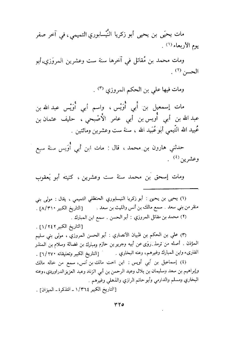 2771 - مَاتَ إِبْرَاهِيم بن أبي الْوَزير وَاسم أبي الْوَزير عمر مولى بني هَاشم كَانَت لَهُ ضَيْعَة بِالطَّائِف وَكَانَ يكون بِمَكَّة نزل الْبَصْرَة أَبُو إِسْحَاق أَخُو مُحَمَّد مَاتَ بعد أبي عَاصِم وَمَات عباد بن صُهَيْب الْبَصْرِيّ يرى الْقدر قَرِيبا مِنْهُ سكتوا عَنهُ