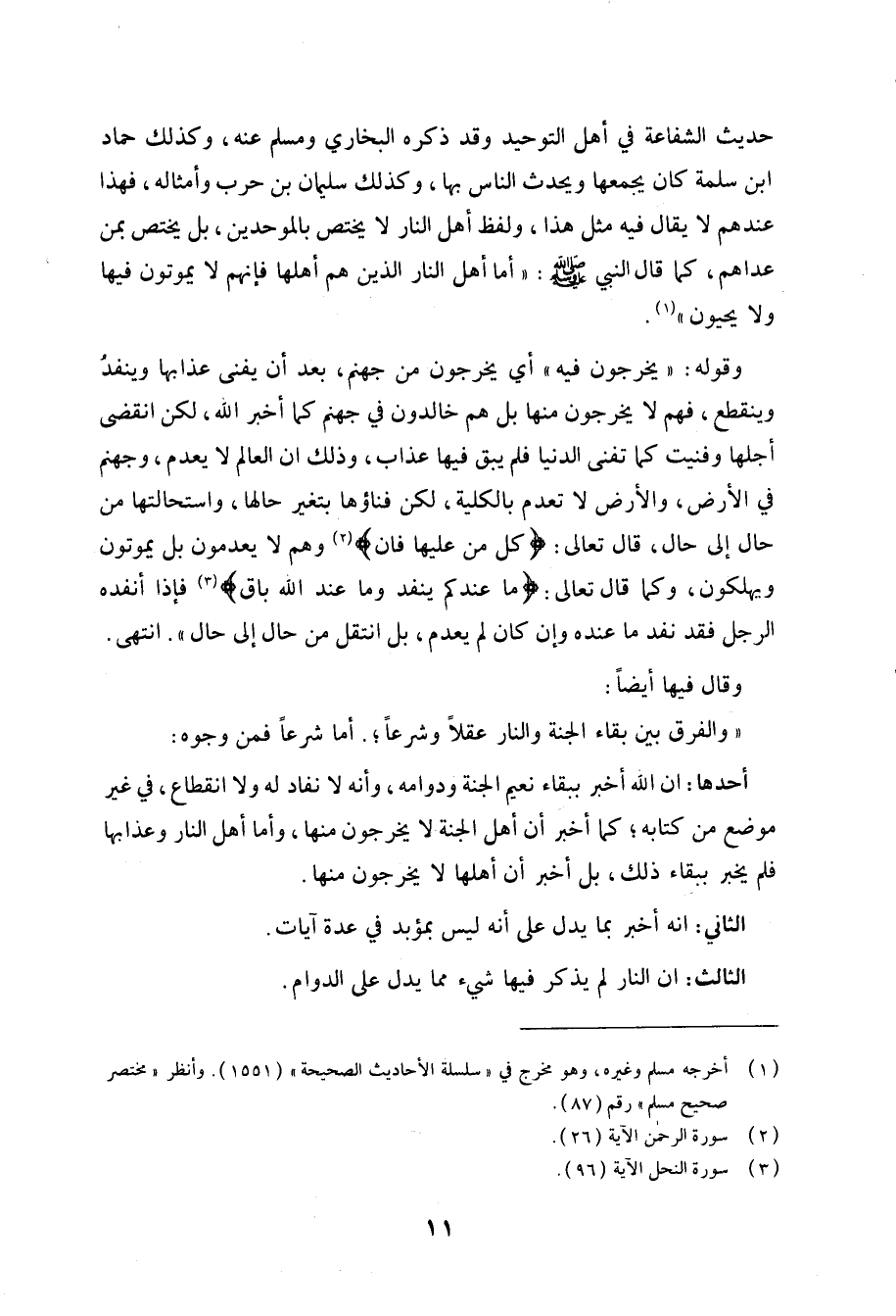 حديث الشفاعة في أهل التوحيد وقد ذكره البخاري ومسلم عنه وكذلك حماد بن سلمة كان يجمعها ويحدث الناس بها وكذلك سليمان بن حرب وأمثاله فهذا عندهم لا يقال فيه مثل هذا ولفظ أهل النار لا يختص بالموحدين بل يختص بمن عداهم كما قال النبي صَلَّى اللَّهُ عَلَيْهِ وَسَلَّم َ: