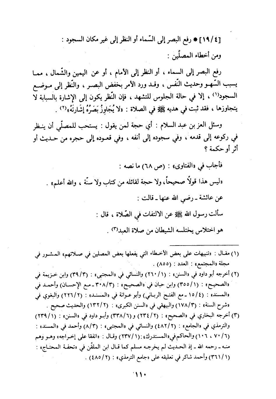 [4/19] (رفع البصر إلى السّماء أو النظر إلى غير مكان السجود: