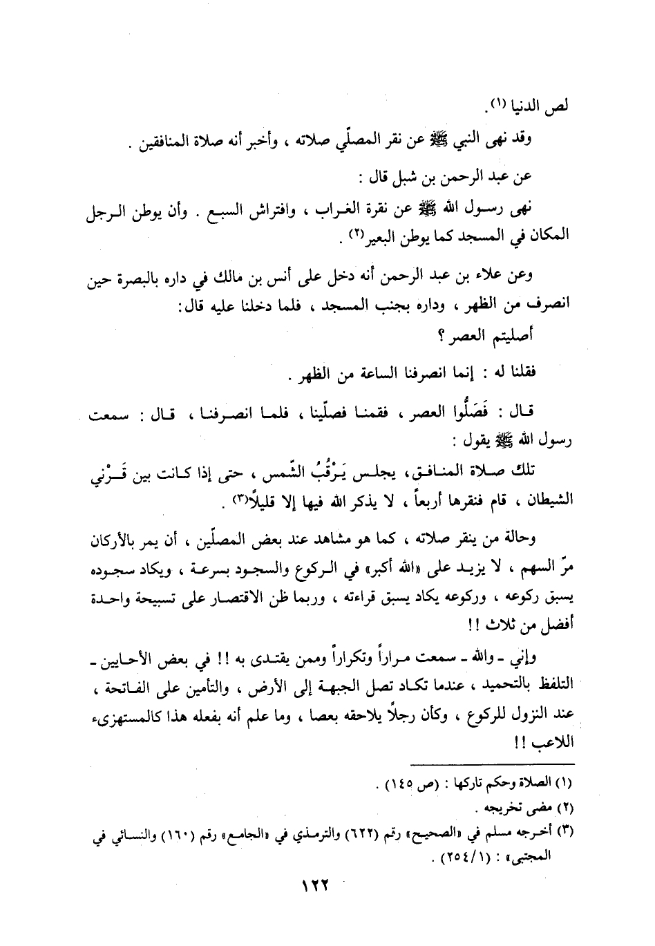 وقد نهى النبي - صلى الله عليه وسلم - عن نقر المصلّي صلاته، وأخبر أنه صلاة المنافقين.