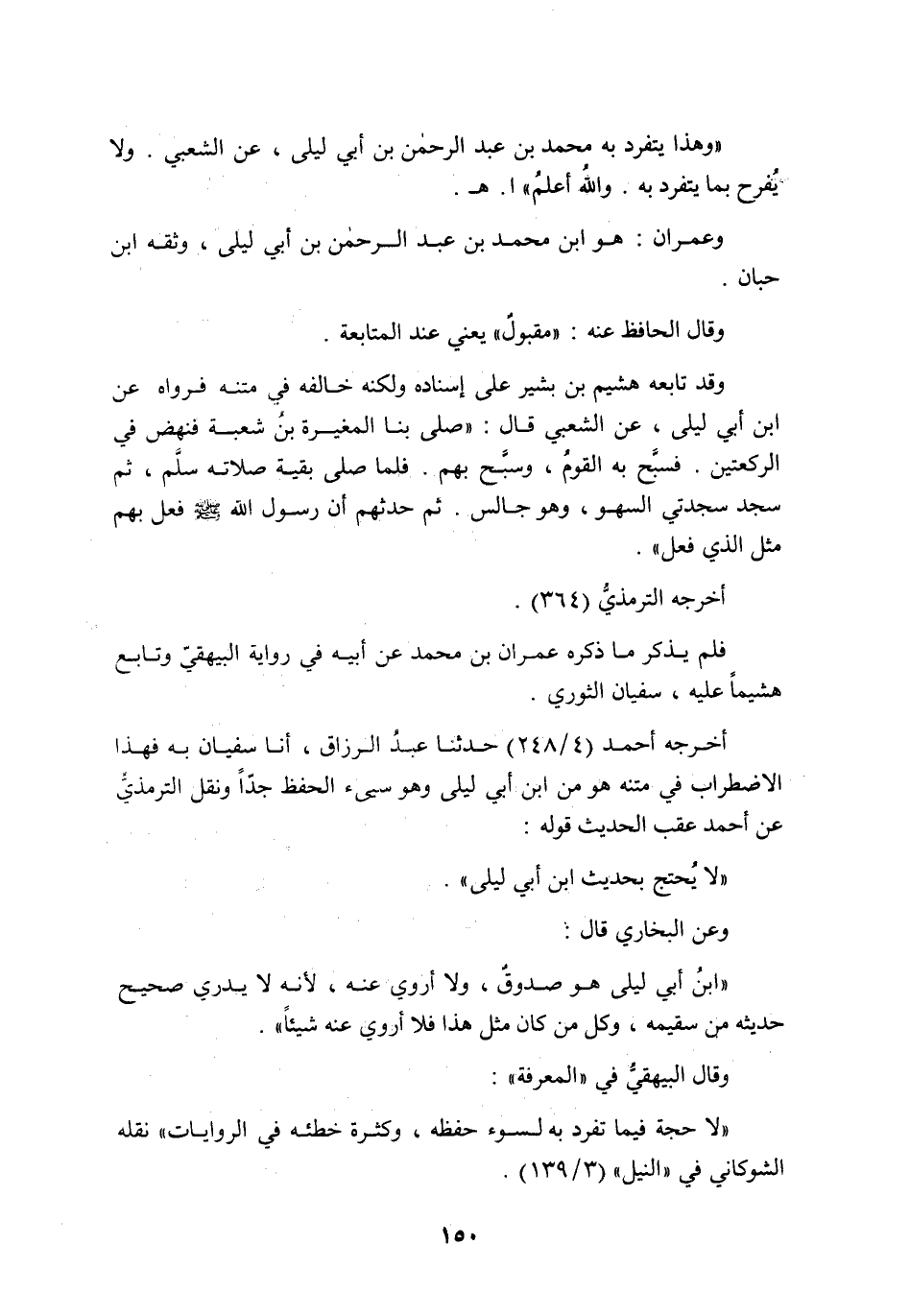 وعن البخاري قال: ((ابنُ أبي ليلى هو صدوقٌ، ولا أروي عنه، لأنه لا يدري صحيح حديثه من سقيمه، وكل من كان مثل هذا فلا أروي عنه شيئاً)) .