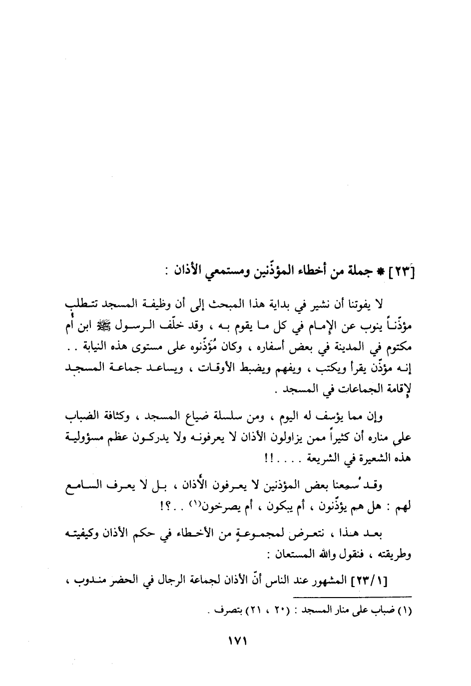 [23] * جملة من أخطاء المؤذّنين، ومستمعي الأذان:
